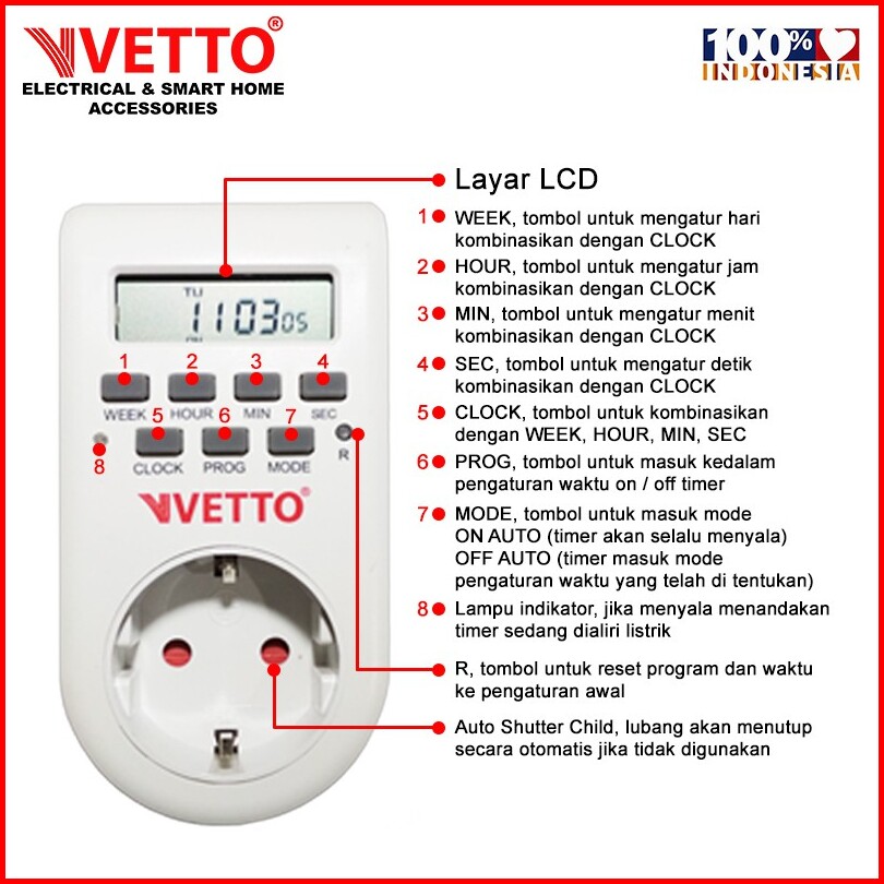 Vetto Stop Kontak Timer Digital Listrik - 1 Minggu