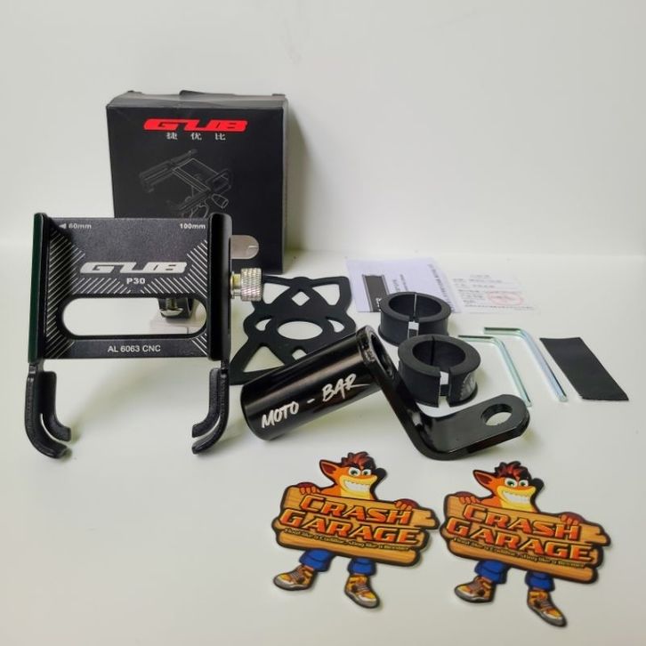 PAKET PHONE HOLDER GUB P30 + BRACKET MOTOBAR ORIGINAL ALUMUNIUM ALLOY HOLDER HP MOTOR TEMPAT HANDPHONE
