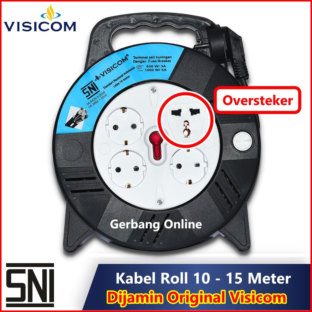 Kabel Roll 10 Meter 15 Meter Stop Kontak 4 Lubang 10m 15m 10 M 15 M Visicom Sni