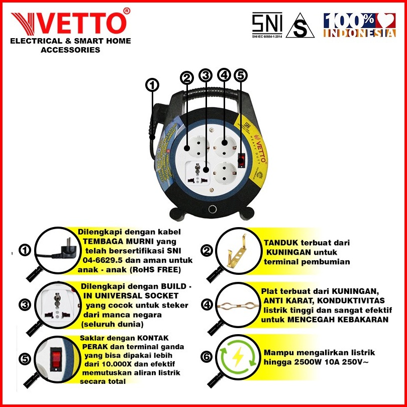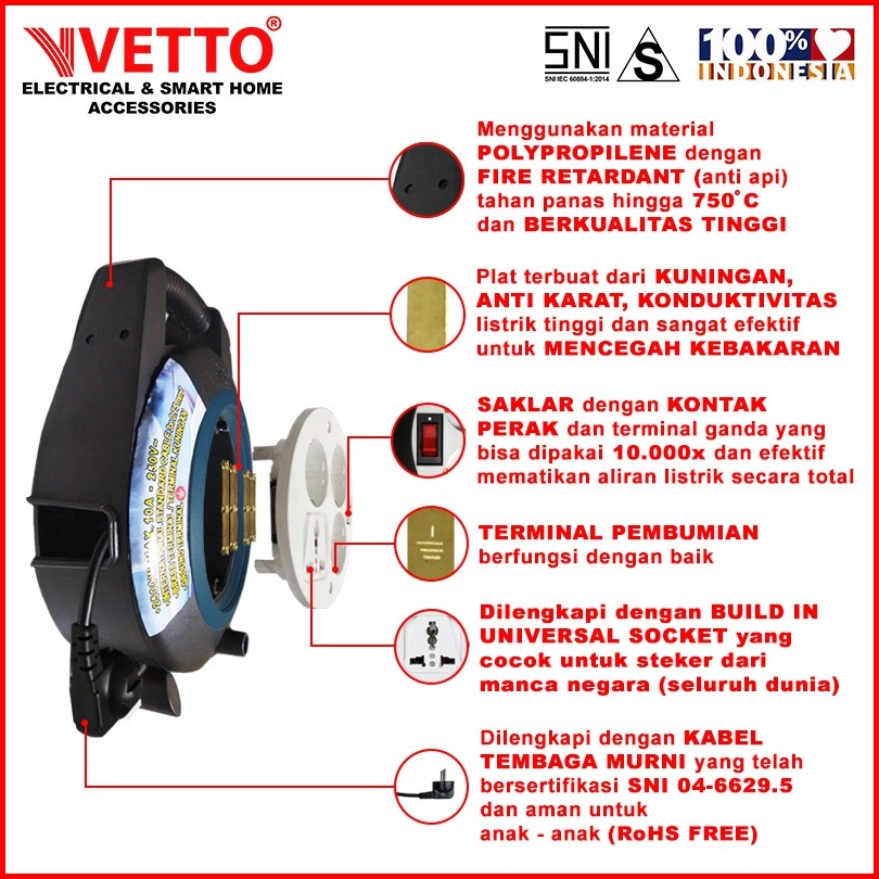 Vetto Kabel Roll V8816 10m Sw Tb - Box Kabel 10 Meter Sni