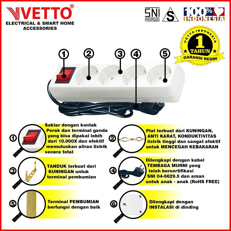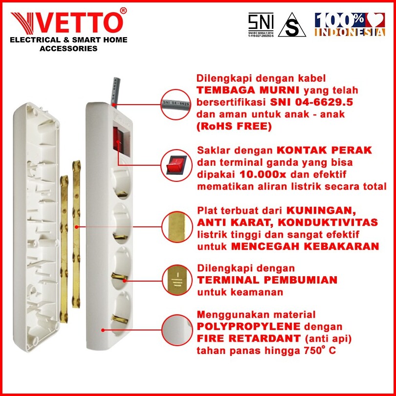 Vetto V8204 1.5m Sw Stop Kontak- 1.5 Meter Sni