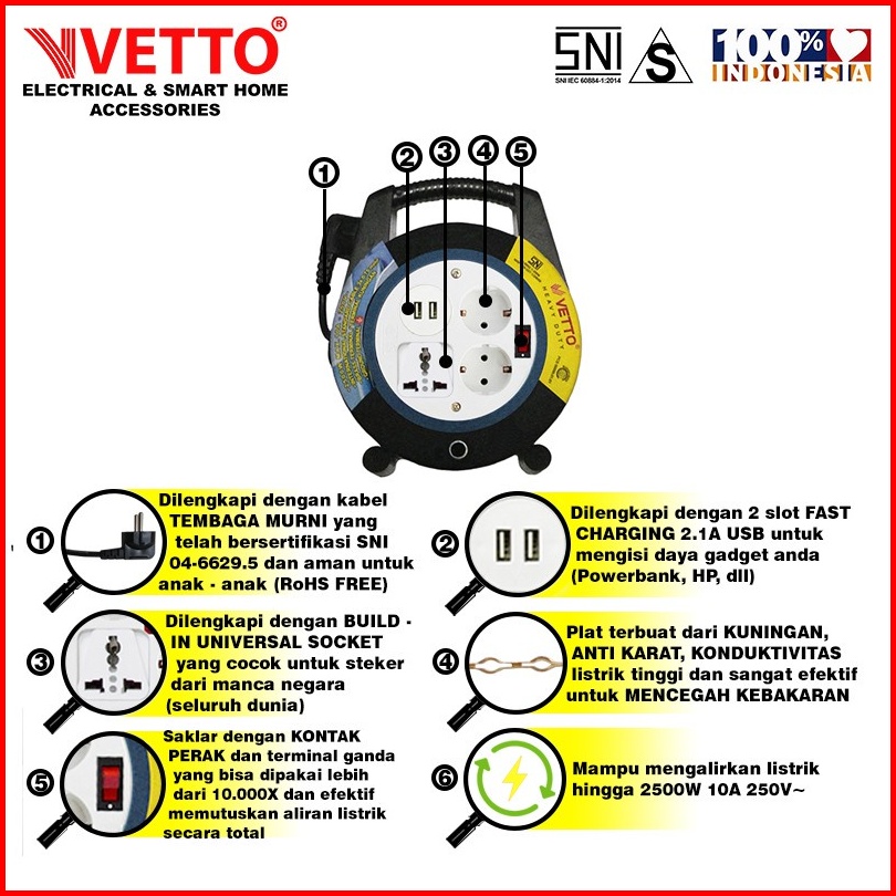 Vetto Kabel Roll V8816 10m Sw Tb Usb - Box Kabel 10 Meter Sni