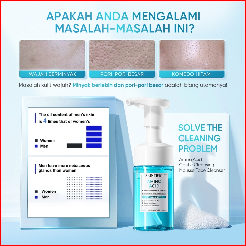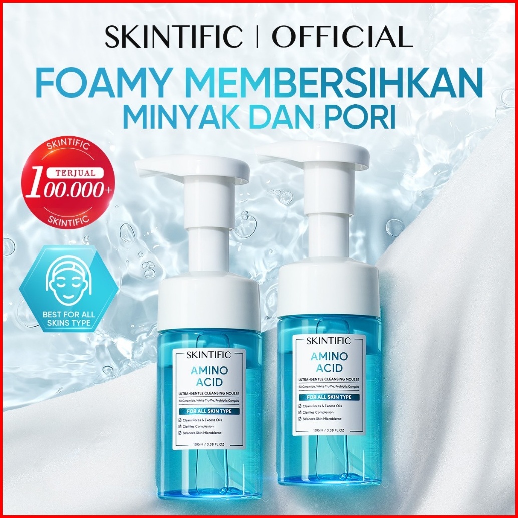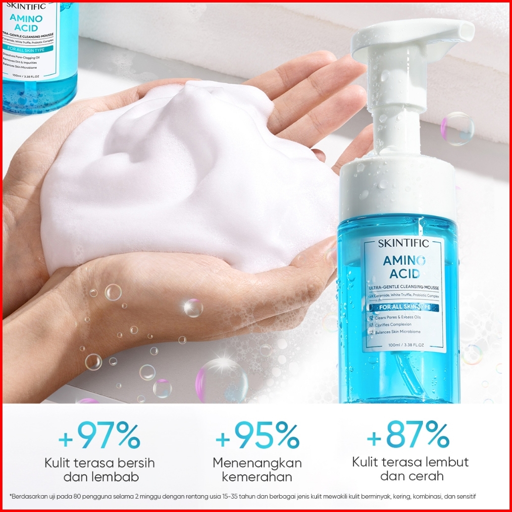 Skintific - Amino Acid Ultra Gentle Cleanser Mousse 100ml Oil Control Clean Calming Down And Clear Facial Wash Sabun Cuc