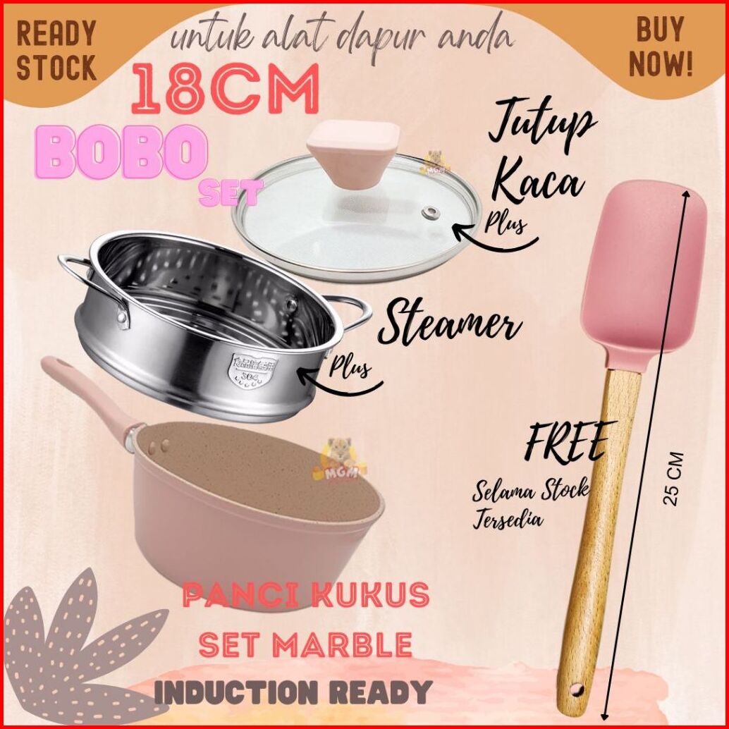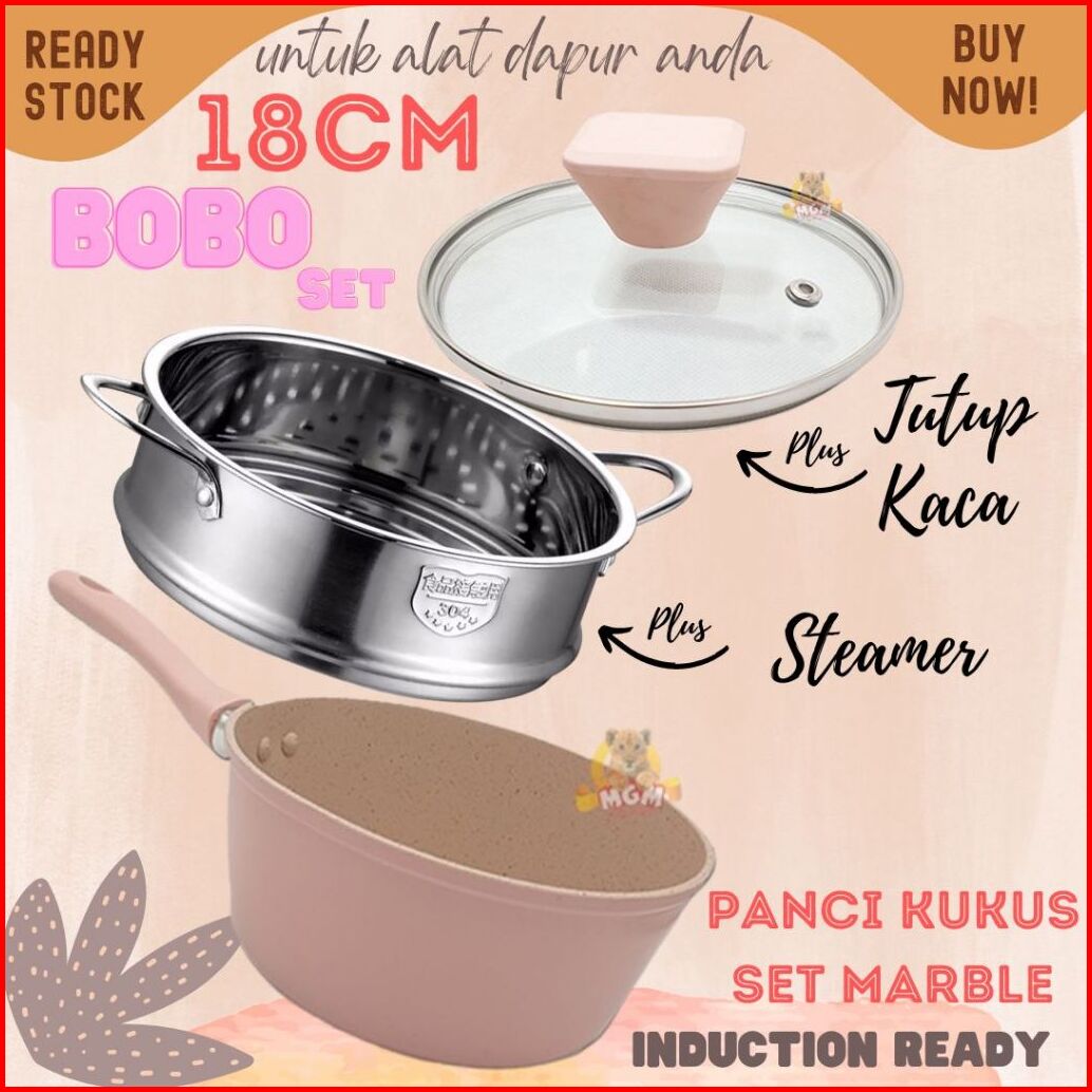 Bobo Set 18cm Panci Susu Marble With Kukusan Dan Tutup Induction Ready