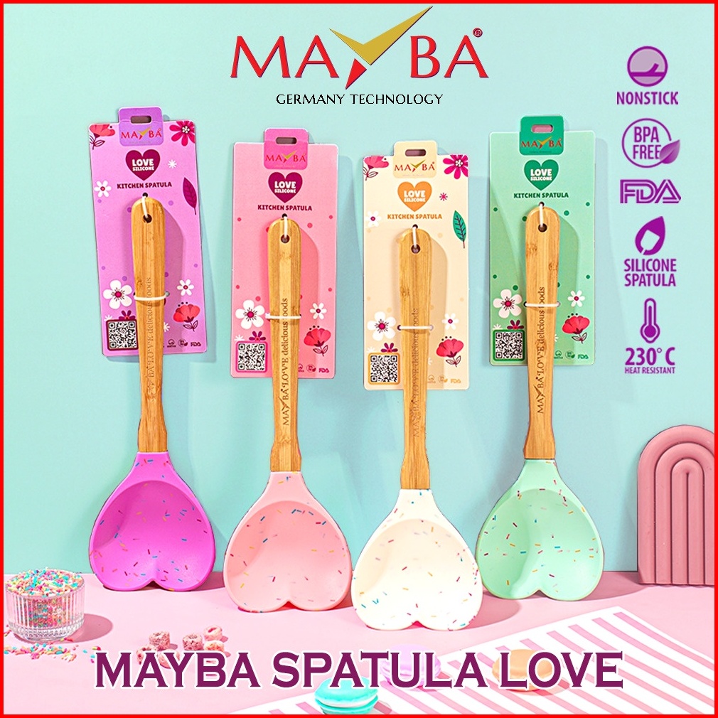 Mayba Spatula Love Silikon Tebal Anti Leleh - Sutil Tuner Silicone Bpa Free Paling Bagus Tuk Panci Set Mpasi Baby Bayi