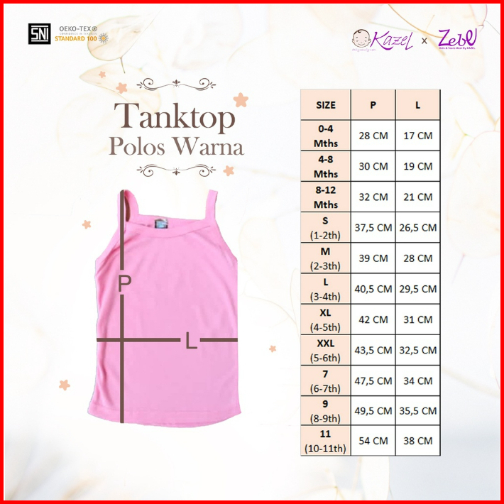 Kazel Tanktop 0-11 Tahun Tanktop Warna Mini Anak Perempuan X Zebe Cbks Half