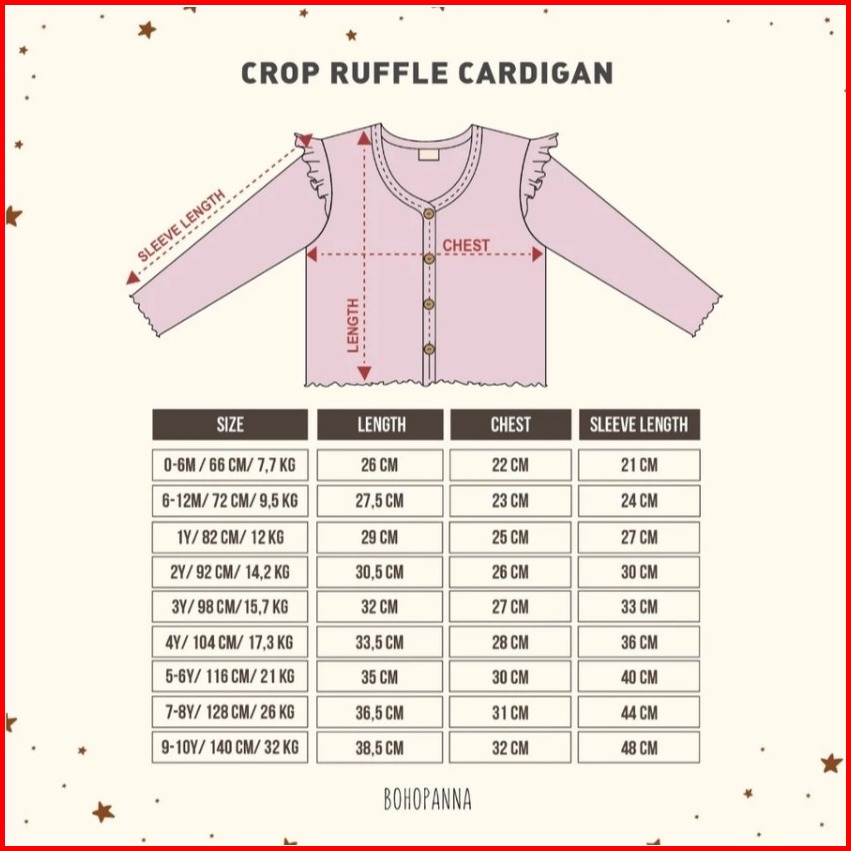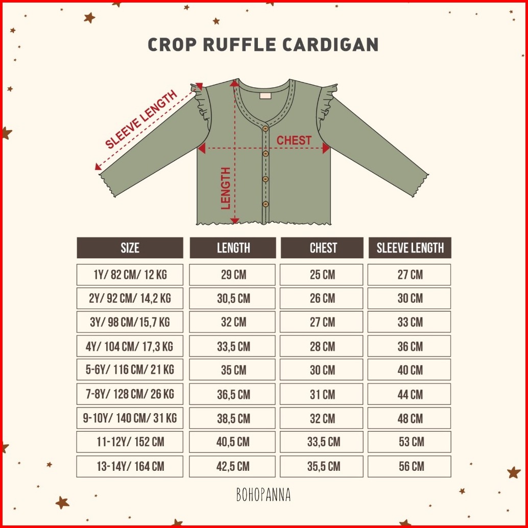 Bohopanna 1-14 Tahun Crop Ruffle Cardigan Tahun Cardigan Crop Anak Perempuan Cbks Nso