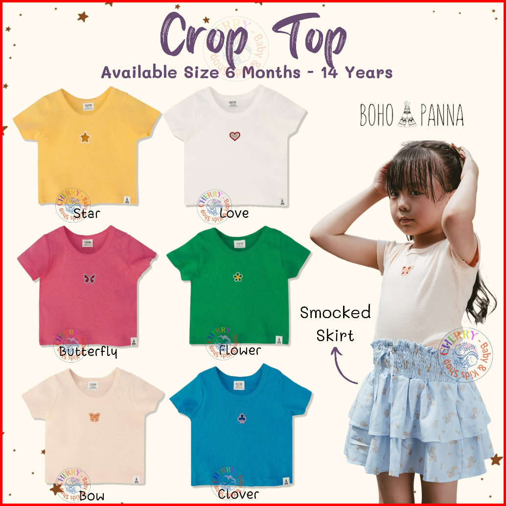 Bohopanna 6 Bulan - 14 Tahun Crop Top Raglan Crop Smiley Baju Crop Fashion Anak Perempuan Cbks