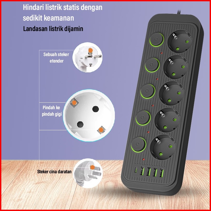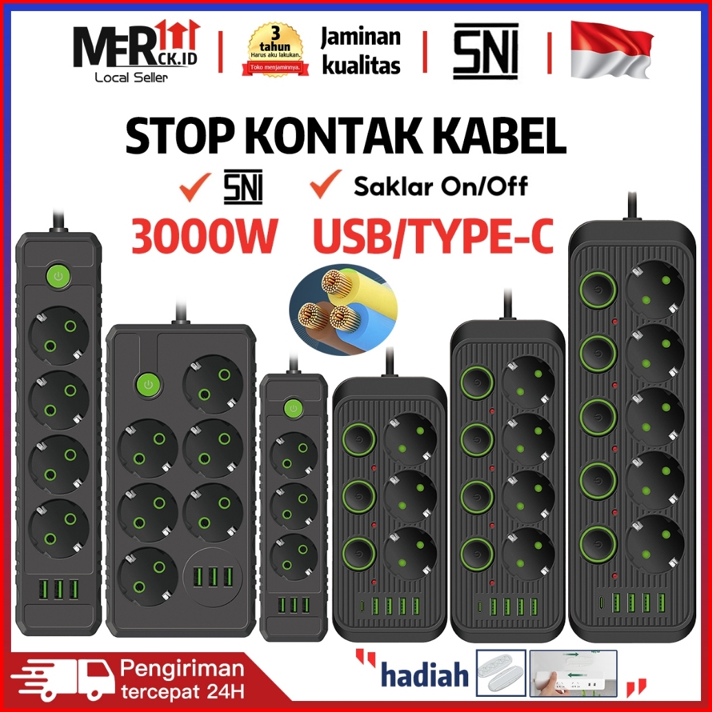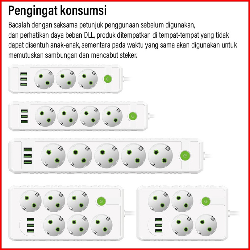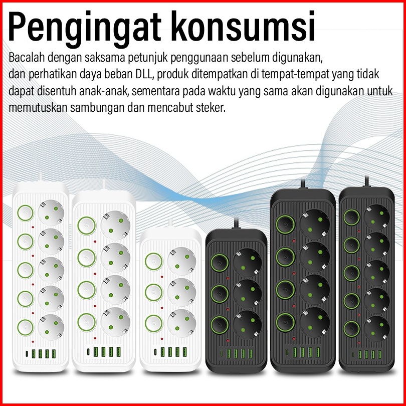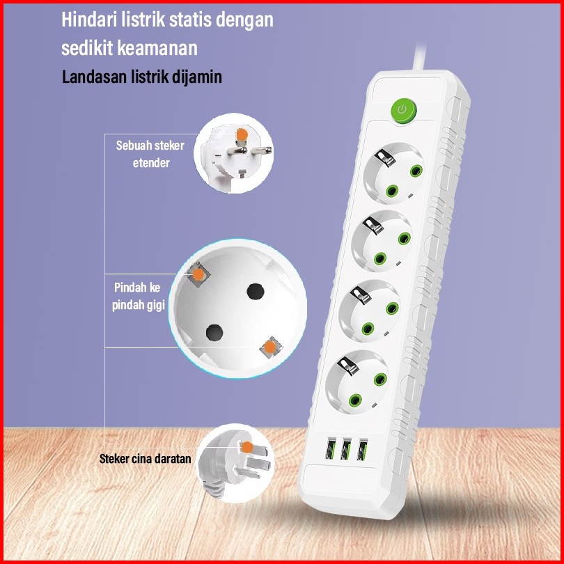 Stop Kontak Colokan Dengan Saklar Daya 3 4 5 6 Lubang 3 Usb Charger 2m Saklar On Off Kabel Asli Tembaga Stop Kontak List