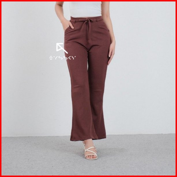Vonzy Pants Celana Cutbray Wanita Bahan Knit Premium Anti Nerawang
