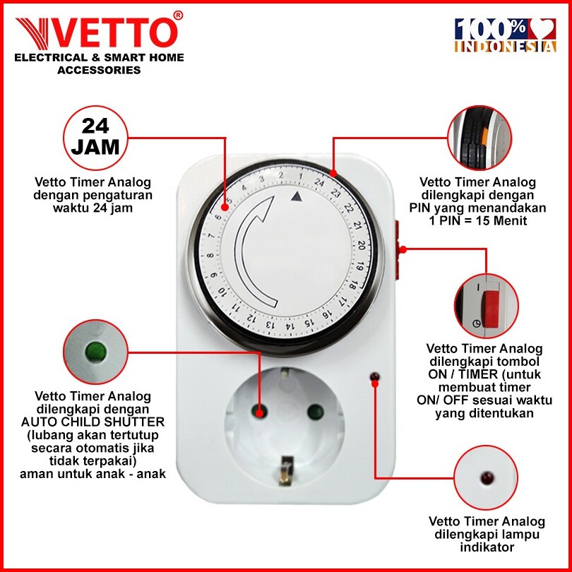 Vetto Stop Kontak Timer Analog - 24 Jam
