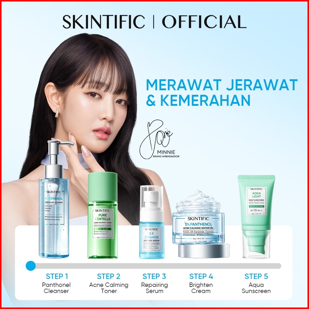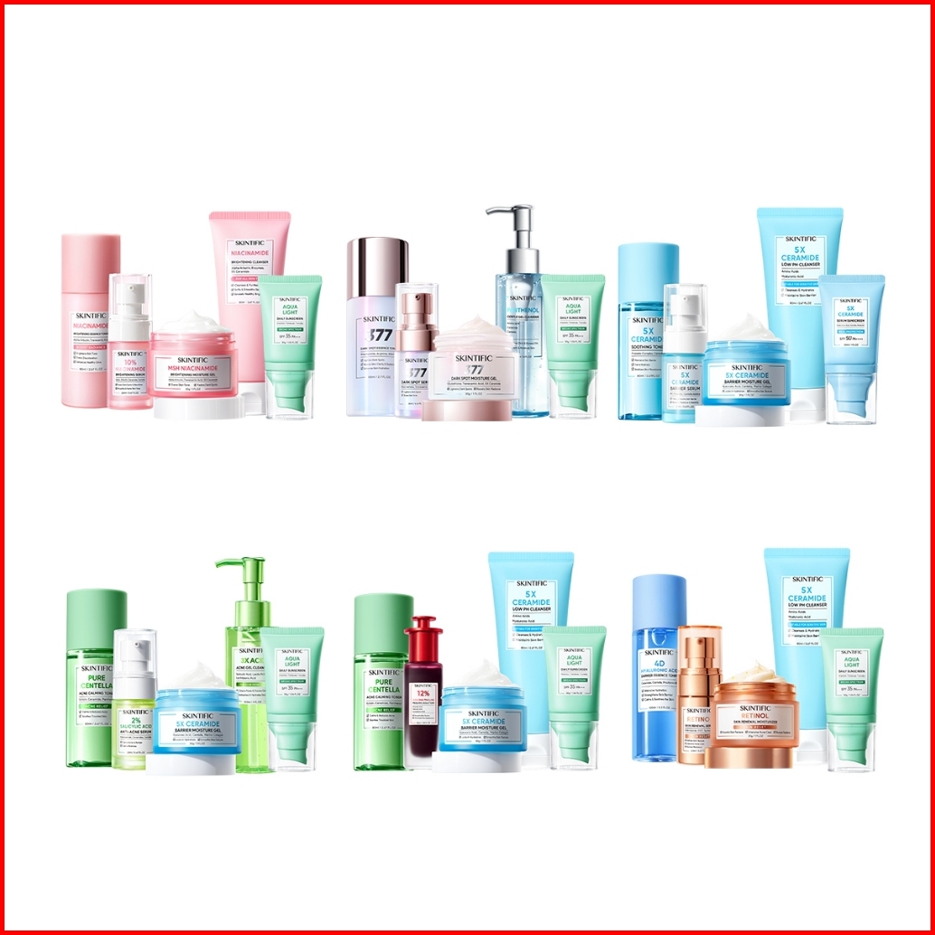 5pcs Skintific- Full Series Skincare Set 5x Ceramide Serum Moisturizer Gel Toner Sunscreen Cleanser Mousse Facial Wash D