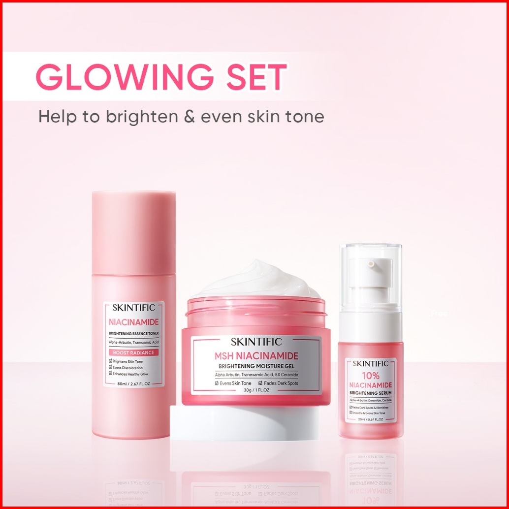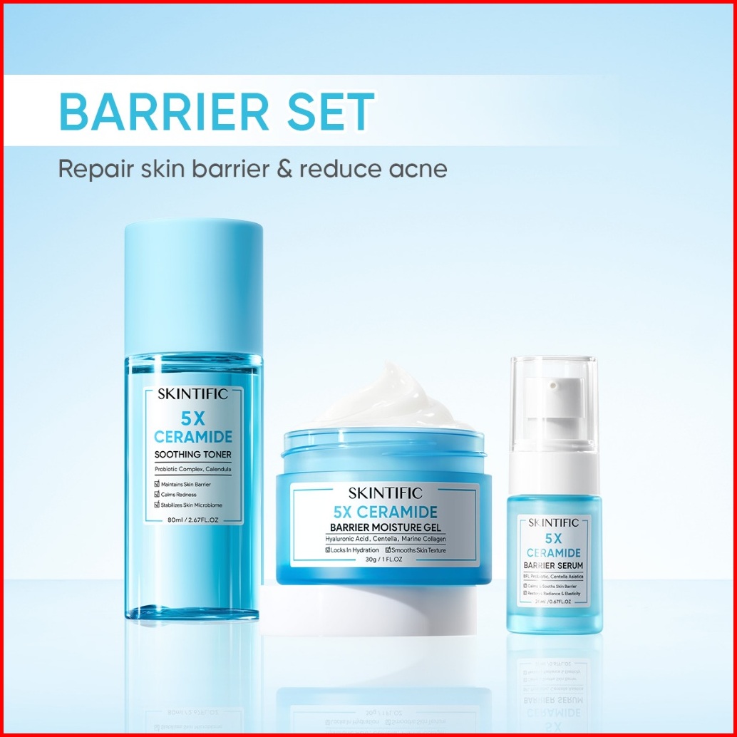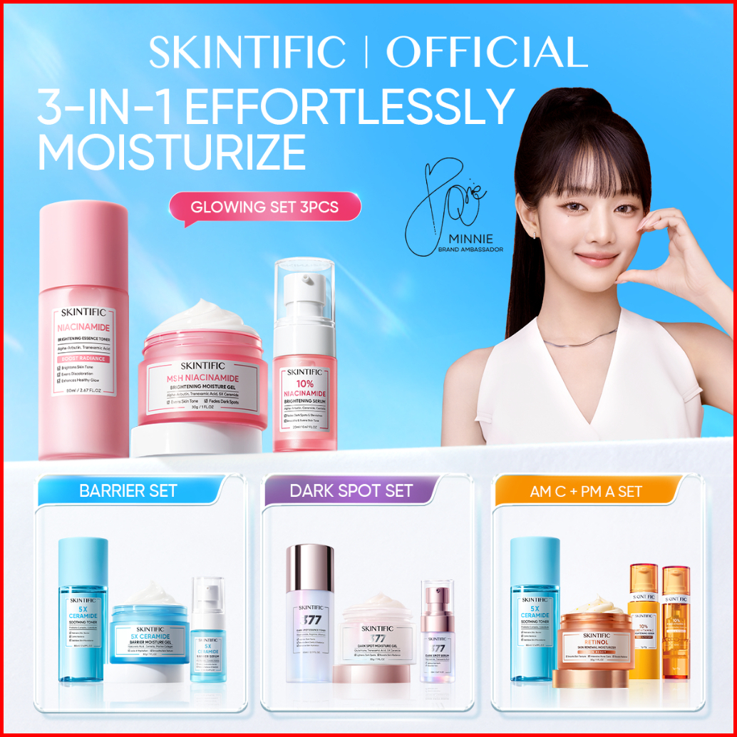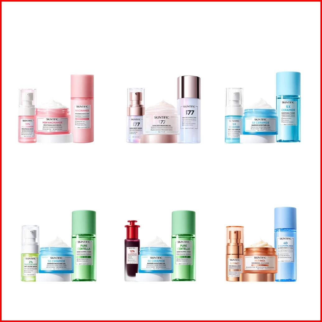 Skintific-3pcs Paket-skincare Set Serum Moisturizer Gel Toner Sunscreen Cleansing Mouss Facial Wash Day Night Cream Acne