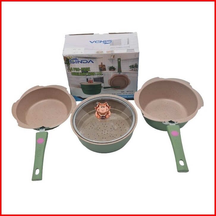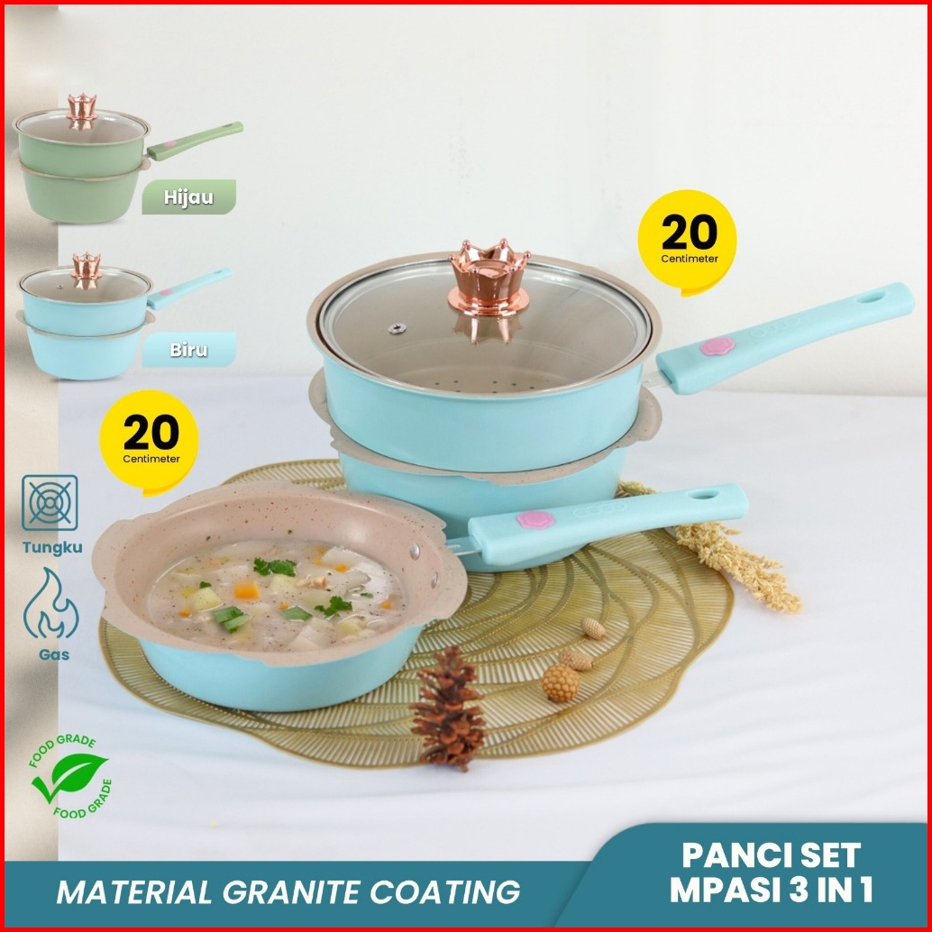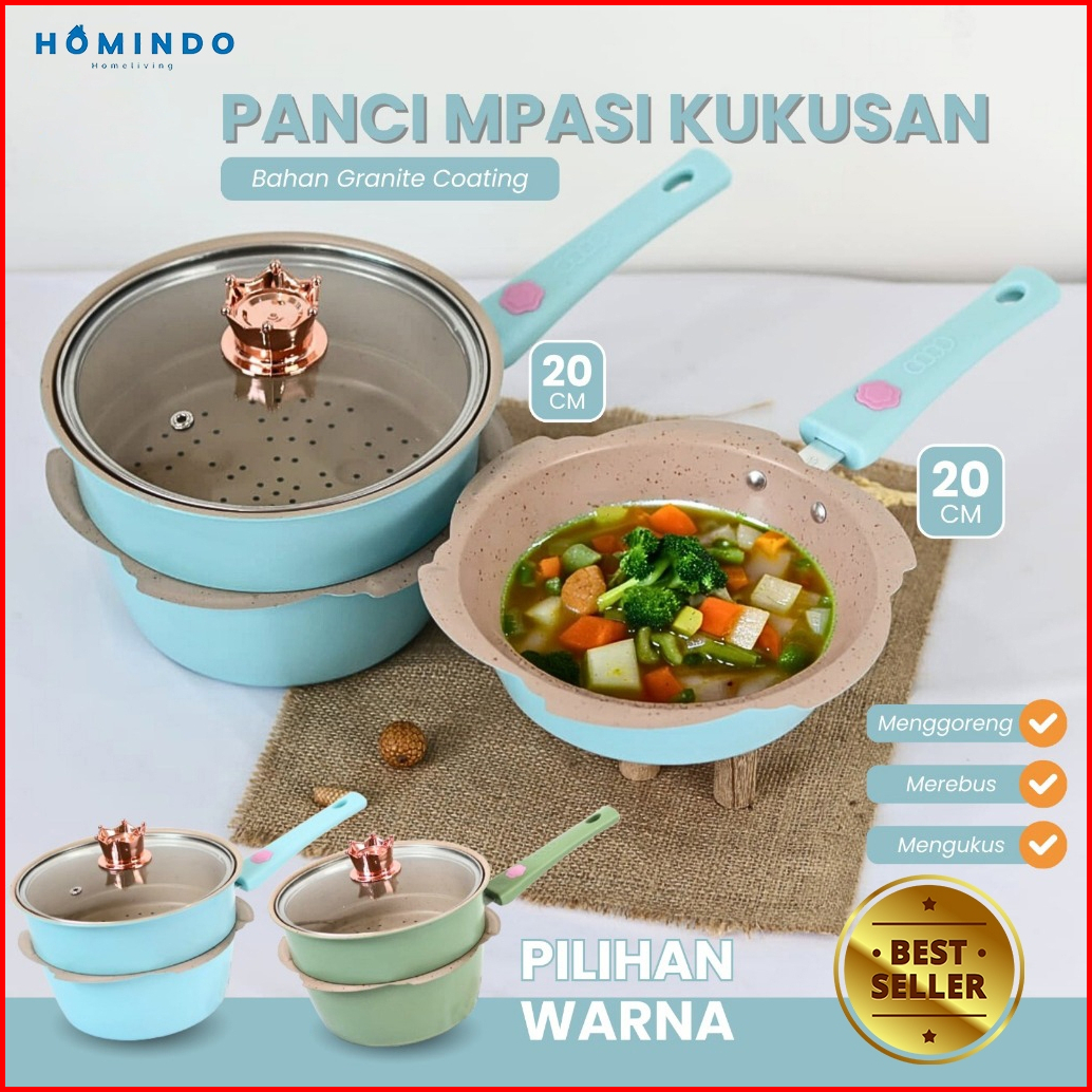 Homindo Panci Mpasi 4 Pcs Wajan Keramik Coating Granit Aman Food Grade Bonus Kukusan