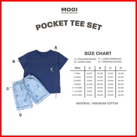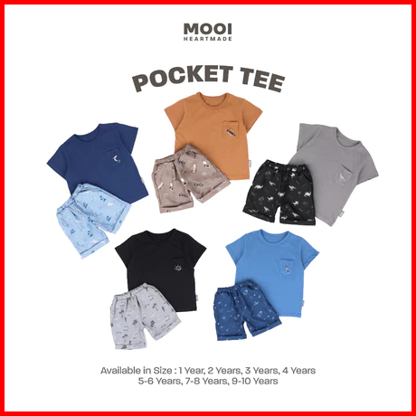 Mooi Pocket Tee Set 1-5 Tahun Setelan Kantong Print Anak Cbks Sdi