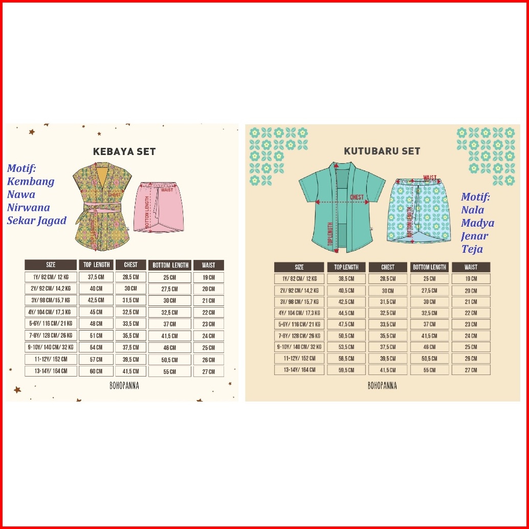 Bohopanna Kutubaru Set 1-14 Tahun Setelan Kebaya Batik Anak Perempuan Cbks
