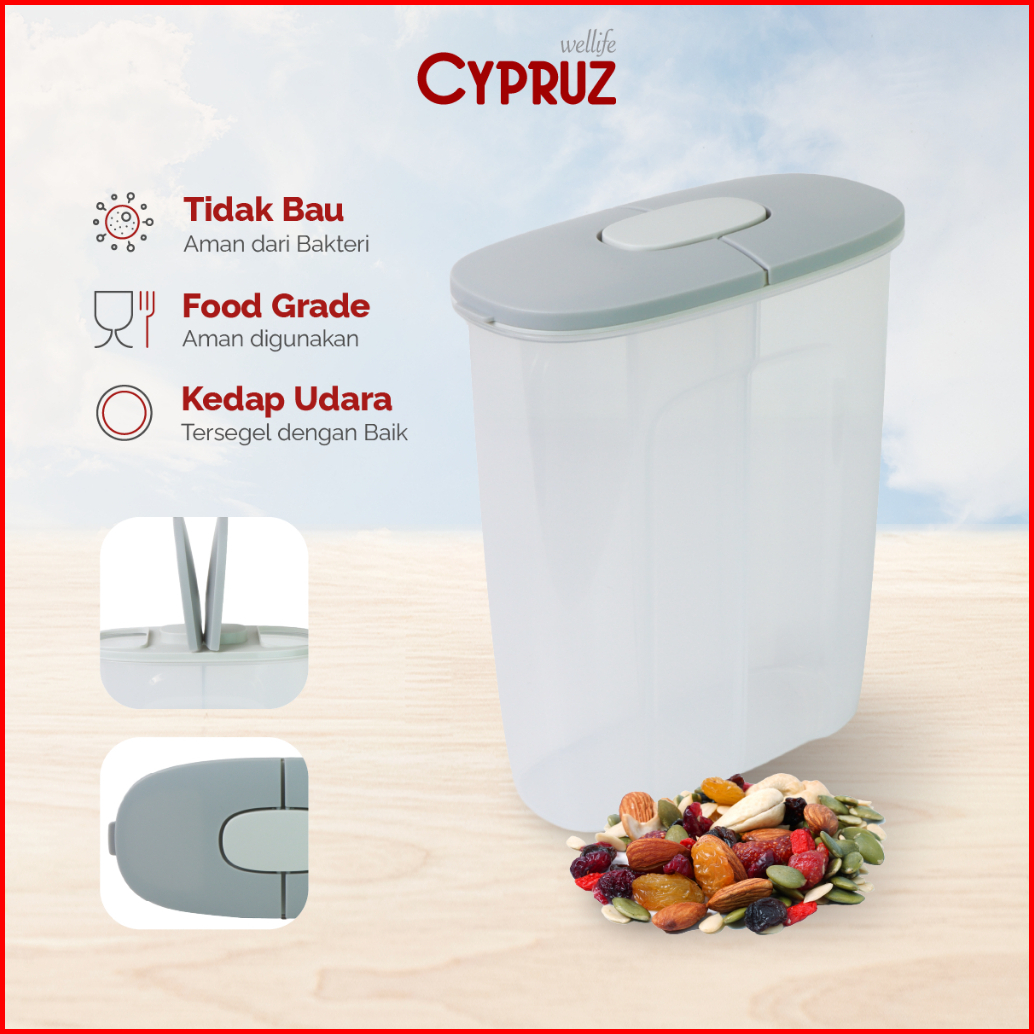 Cypruz Food Container Two Port Tempat Penyimpanan Makanan Sereal Kedap Udara 2.5 L