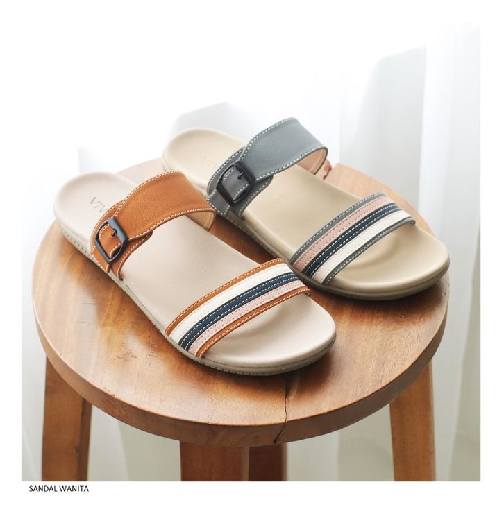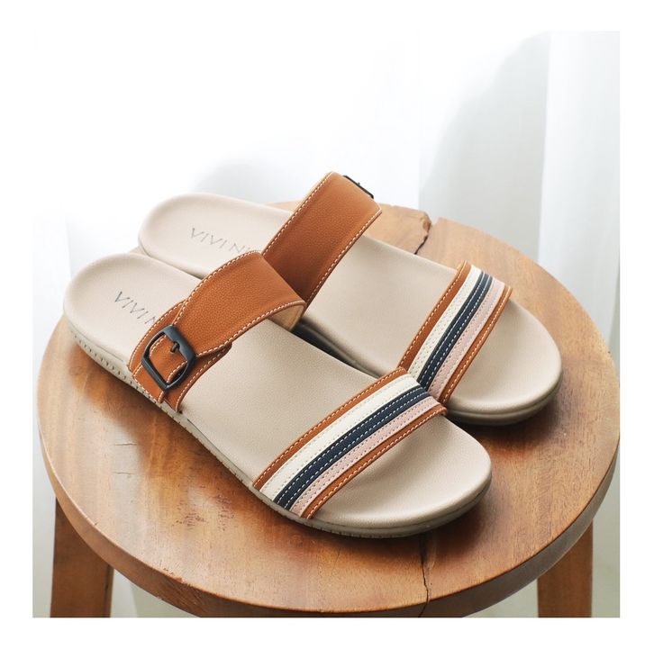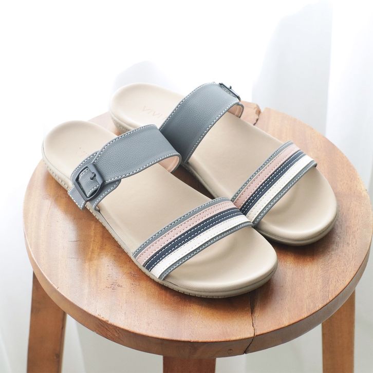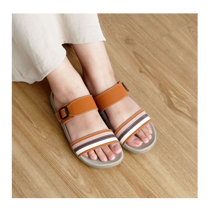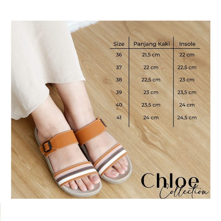 Sandal Flat Wanita Chloe Tanpa Hak Ujung Terbuka Slip-On Kasual