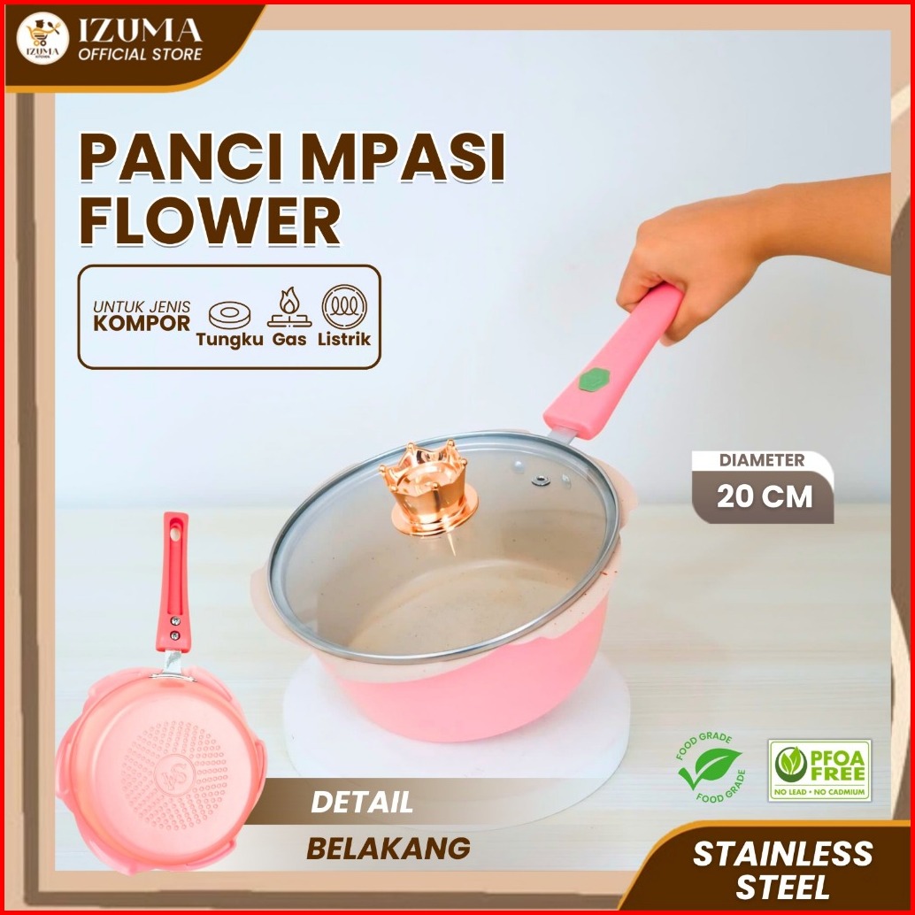 Izuma Panci Mpasi Food Grade Set Panci Susu Cookware Fullset Pink Anti Lengket