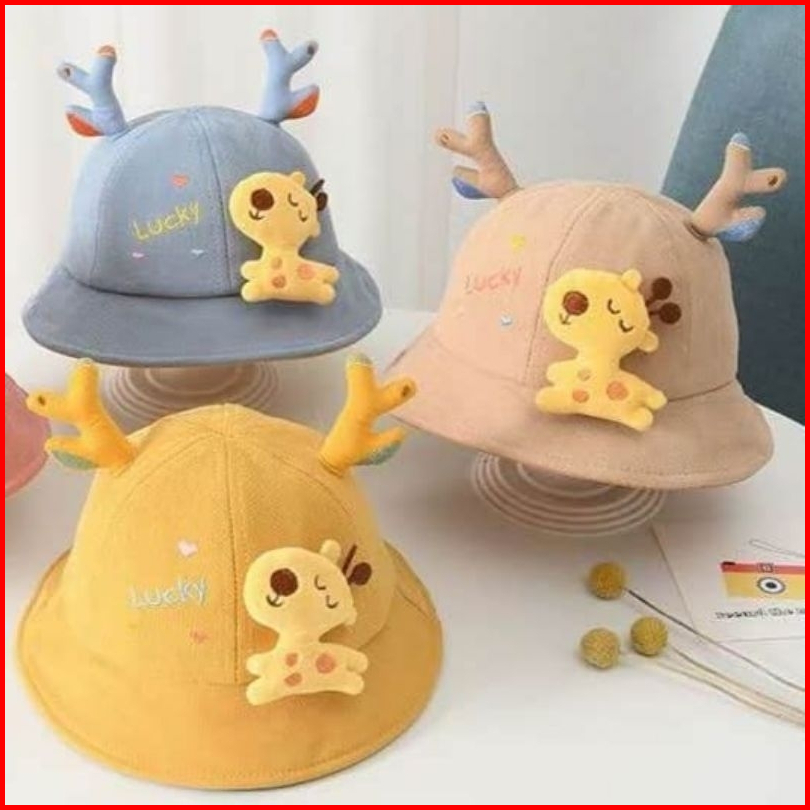 Topi Bayi Bucket Hat Lucky Deer Boneka Rusa Tanduk Premium