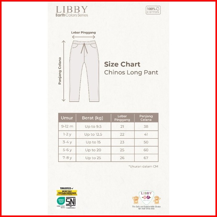 Libby Long Chinos 9 Bulan - 12 Tahun Celana Panjang Chino Anak Laki Laki Cbks Sdi