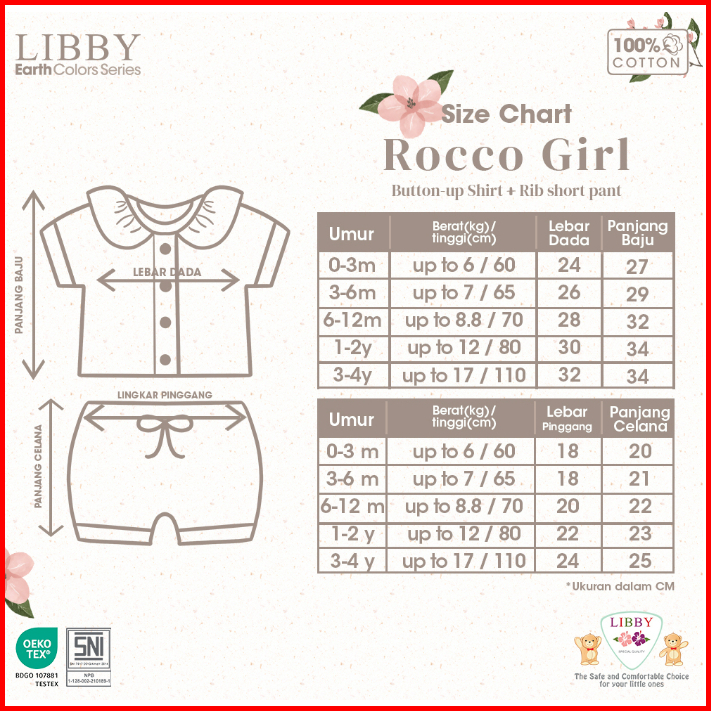 Libby Rocco Girl 0-2 Tahun Premium Setelan Piyama Pendek Panjang Anak Perempuan Collar Set Girl Cbks