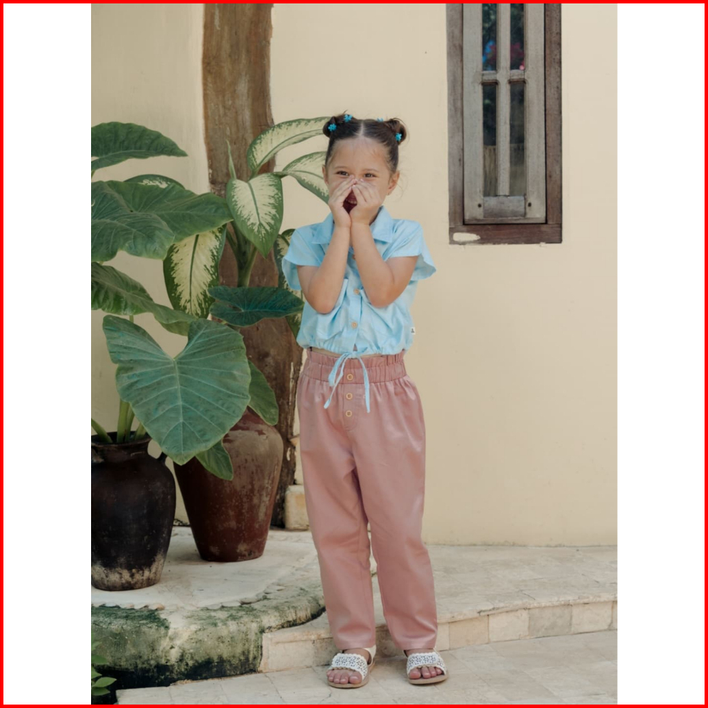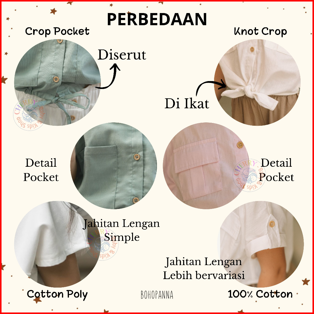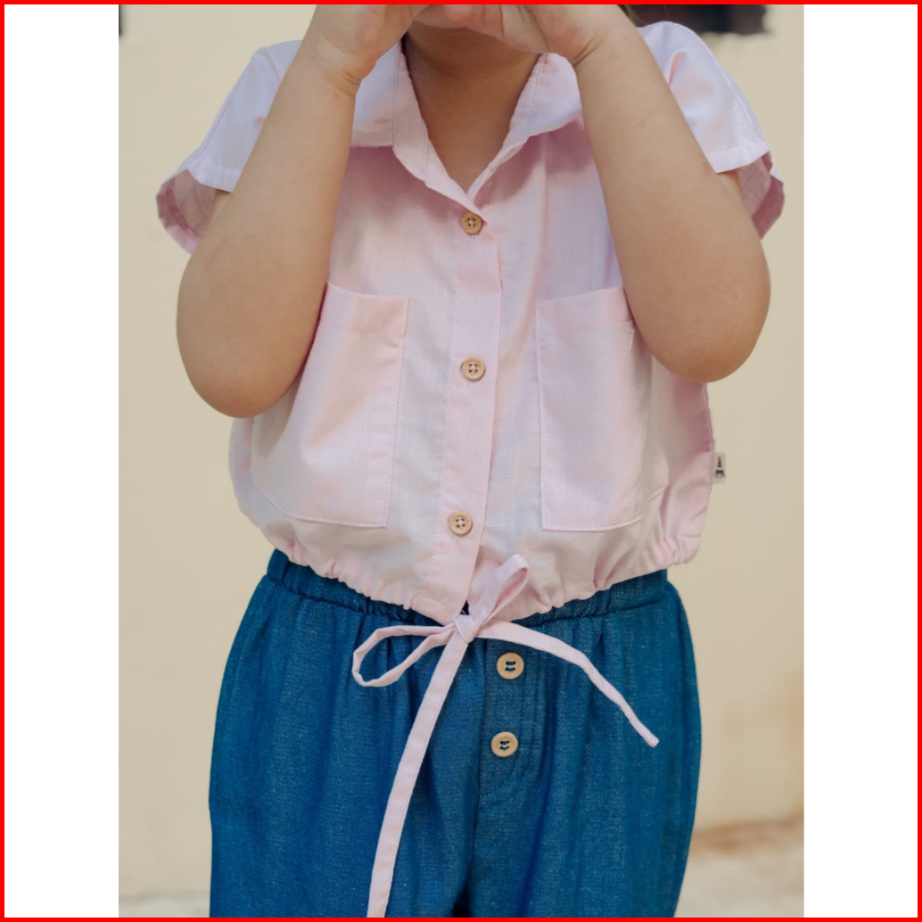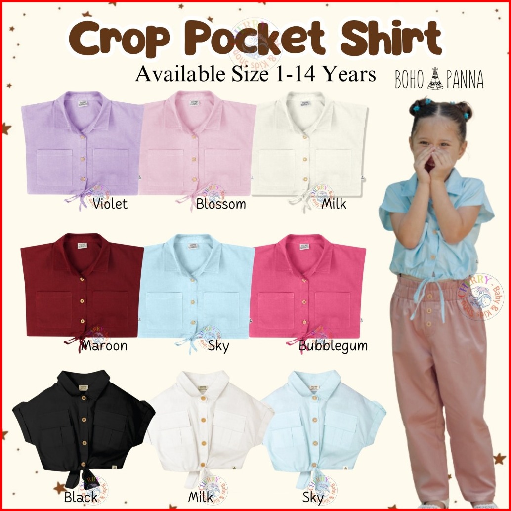 Bohopanna 1-14 Tahun Knot Crop Pocket Shirt Kemeja Crop Top Kantong Anak Perempuan Blouse Fashion Anak Perempuan Cbks