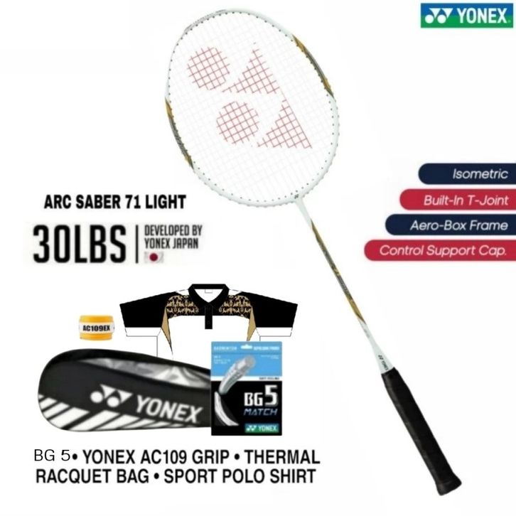 RAKET BADMINTON YONEX ARCSABER ARC SABER 71 LIGHT 5U G5 TARIKAN 30 LBS ORIGINAL GRATIS TAS RAKET BAJU KAOS
