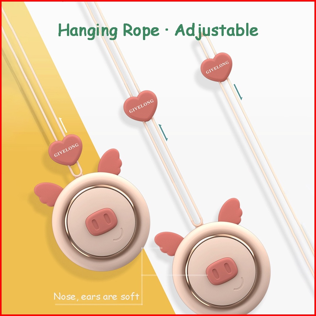 Kipas Angin Mini Kipas Angin Portable Kalung Leafless Tali Cute Animal Portable Fan Rechargeable