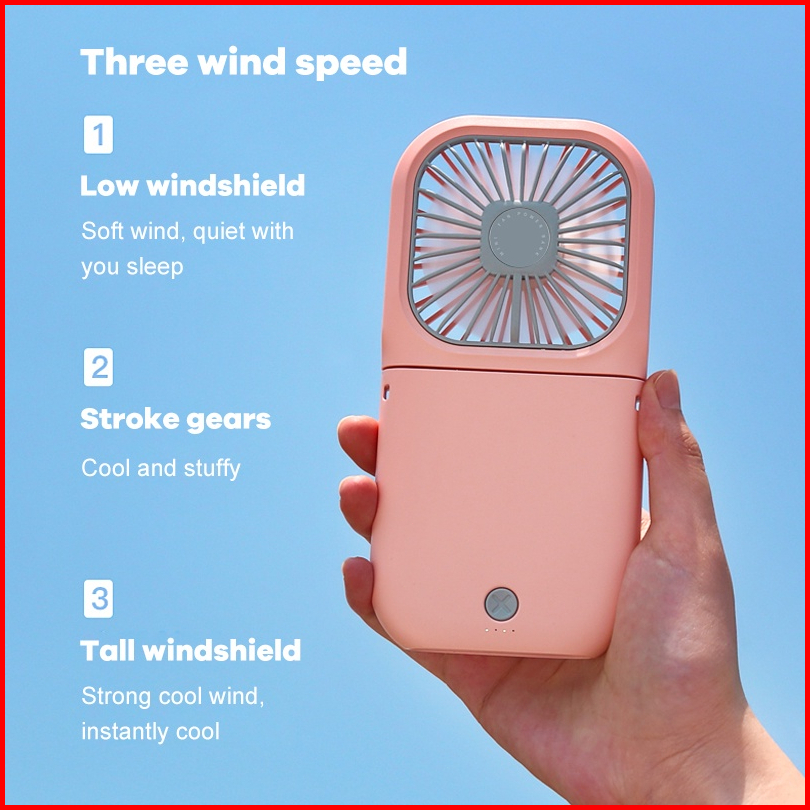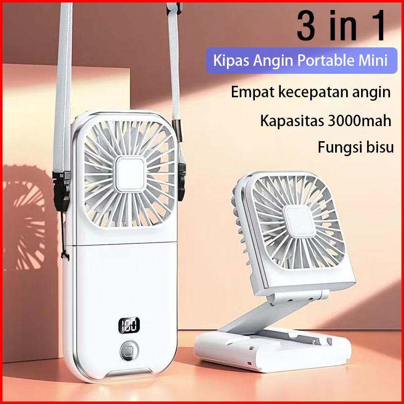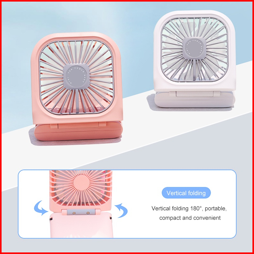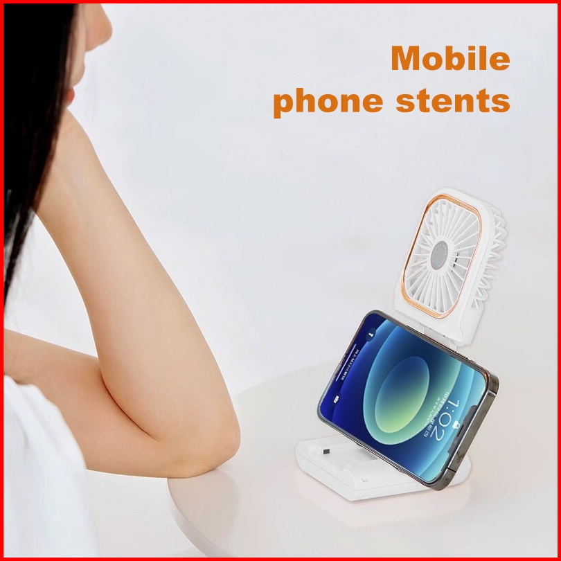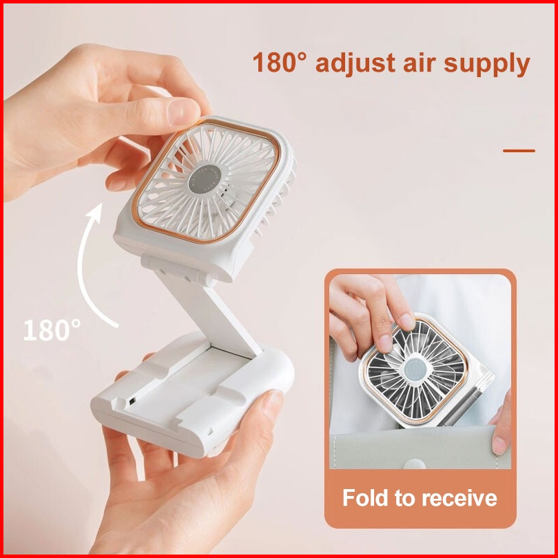 Kipas Angin Portable Mini Usb Lipat Dudukan Ponsel Dan Powerbank 3000mah Baterai Tahan Lama Cocok Untuk Kantor Sekolah O