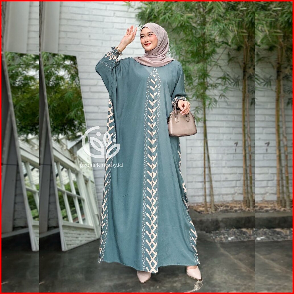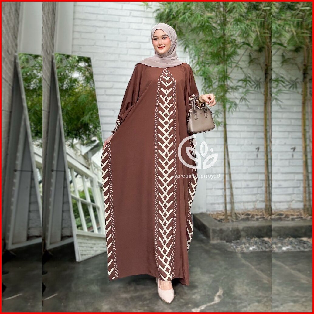 Soleha Premium Kaftan Bahan Rayon Jumbo Tali Depan Motif Monochrome Ld 180 Cocok Untuk Sehari - Hari Mewah Simple Elegan