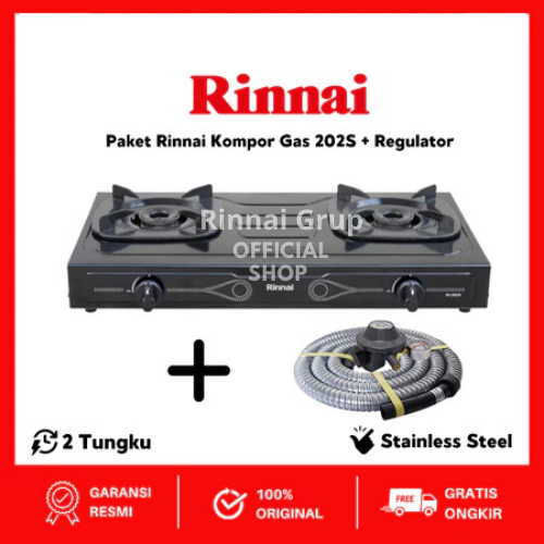 [Mall] Kompor Gas Rinnai 2 Tungku RI-202S Original Official Store + Selang Regulator RMS-206M