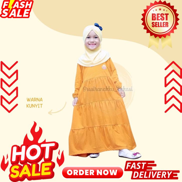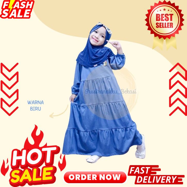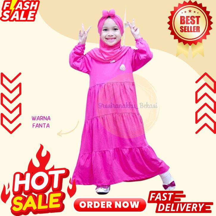 Gamis Kaos Anak Aplikasi Bordir Mix Warna Size 5 10Thn Termurah