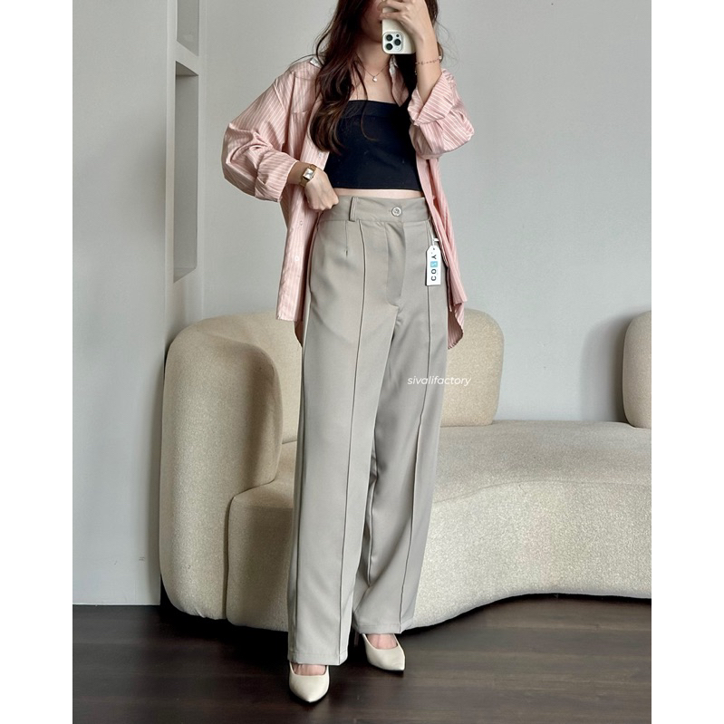 Loose Pants /Celana Kulot Highwaist Polyester Wanita /Trousers Kantor Formal / Casual Long Cullote