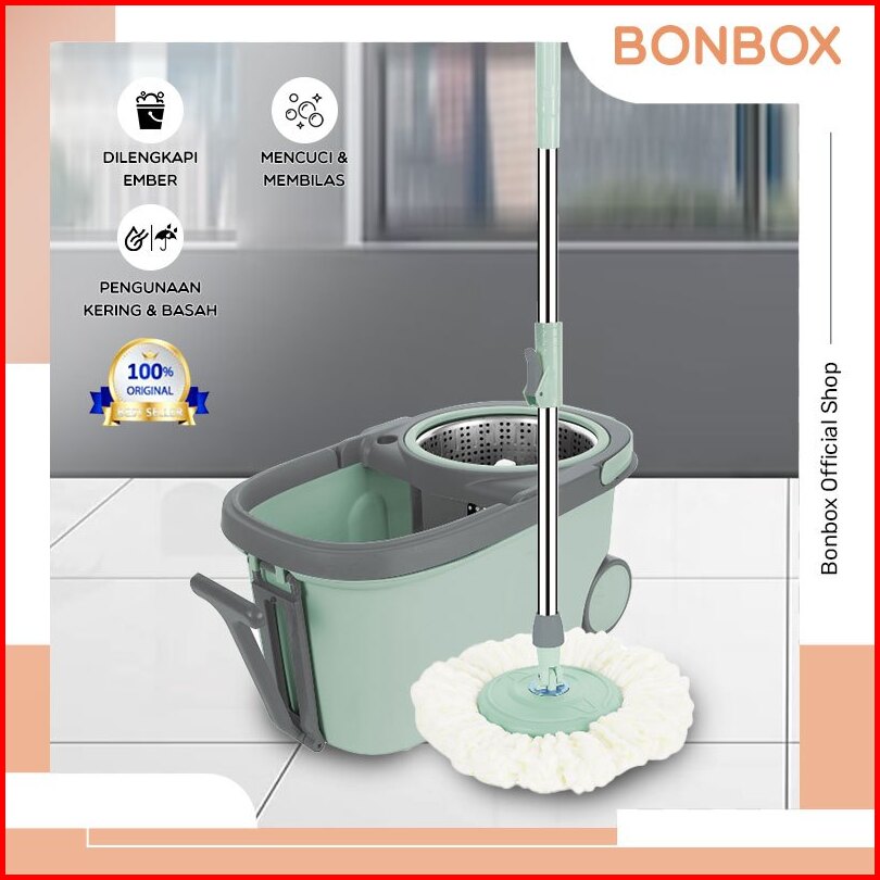 Viral Bonbox Ultra Mop Alat Pel Lantai Bak Pengering Dapat Dipisah Free 2 Kain Pel Fiber Dengan Spin Mop Dapat Dilepas M