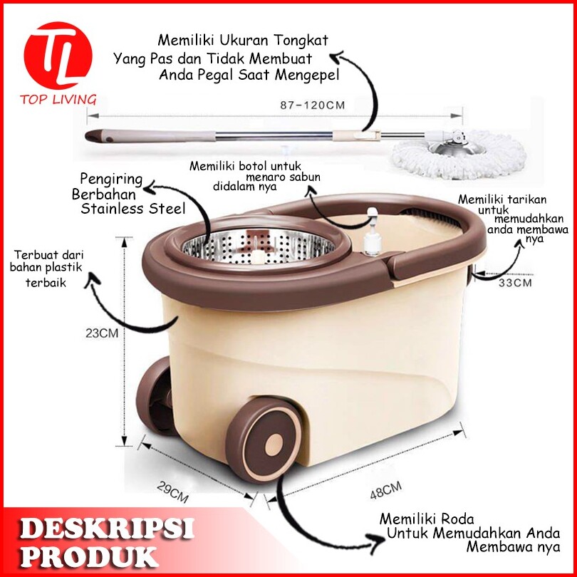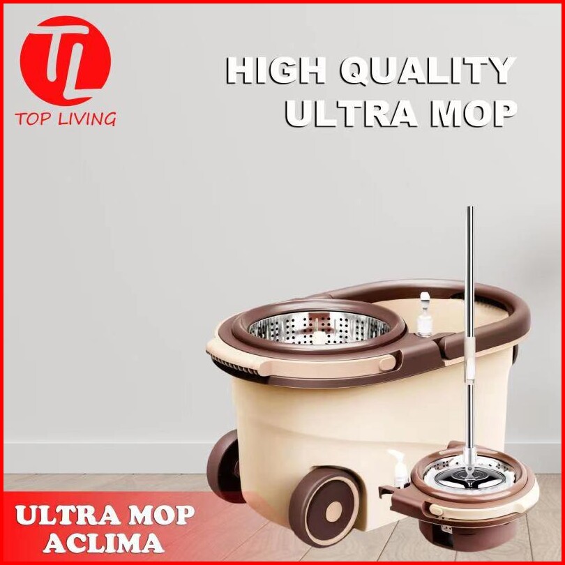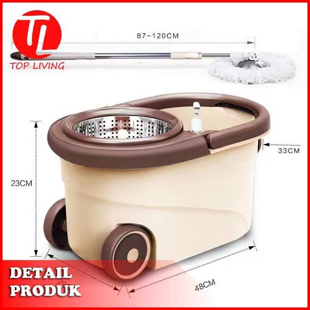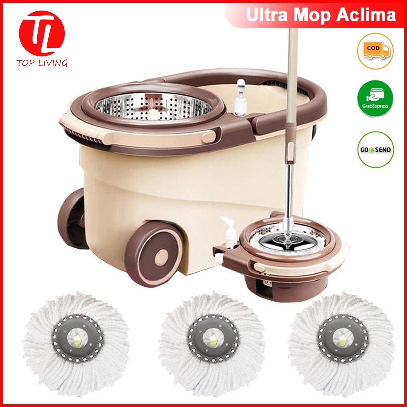 Top Living Spin Mop Alat Pel Lantai Praktis Ultra Mop Otomatis Kering Basah Kain Lap Pel Lantai Bers