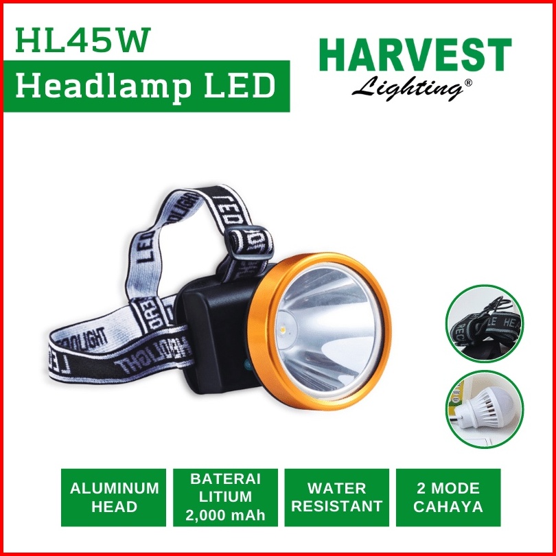 Harvest Lighting Headlamp 45w Senter Kepala Led Lampu Travelling Rechargeable Original Bergaransi