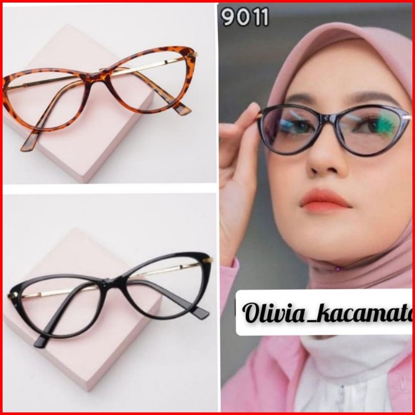 Kacamata Wanita Cat Eye 9011 Minus Clynder Normal Paket Lensa Photocromic Dan Blueray