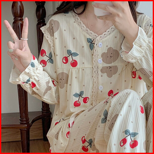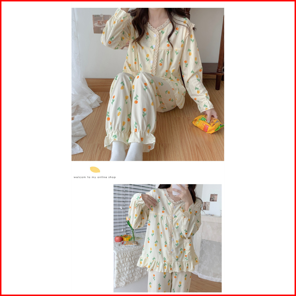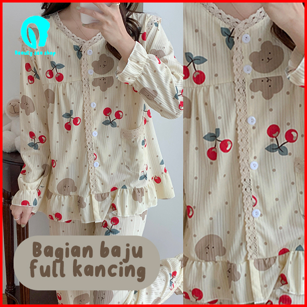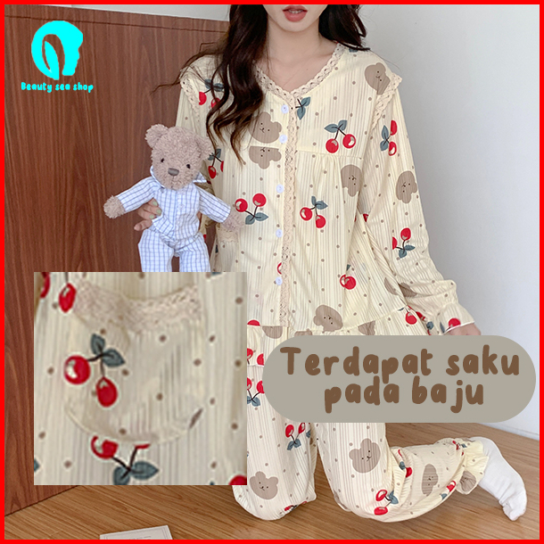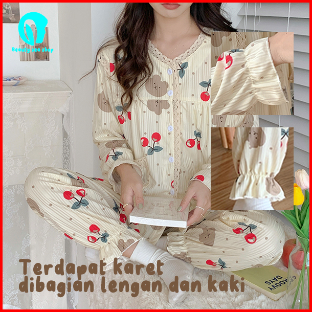 Bts-lx70 Beautyseashop Piyama Lengan Panjang Bahan Rib Korea Import