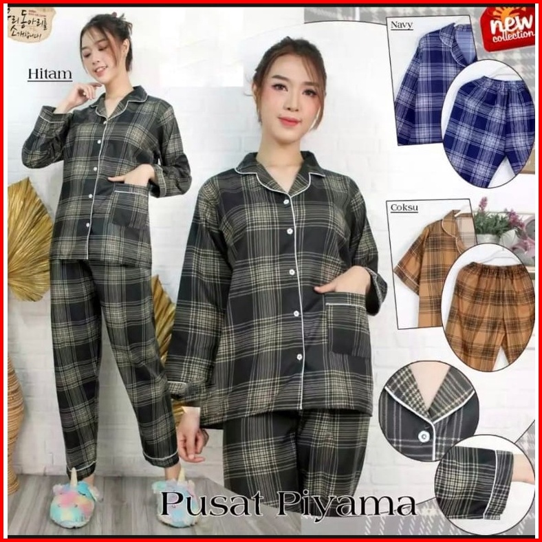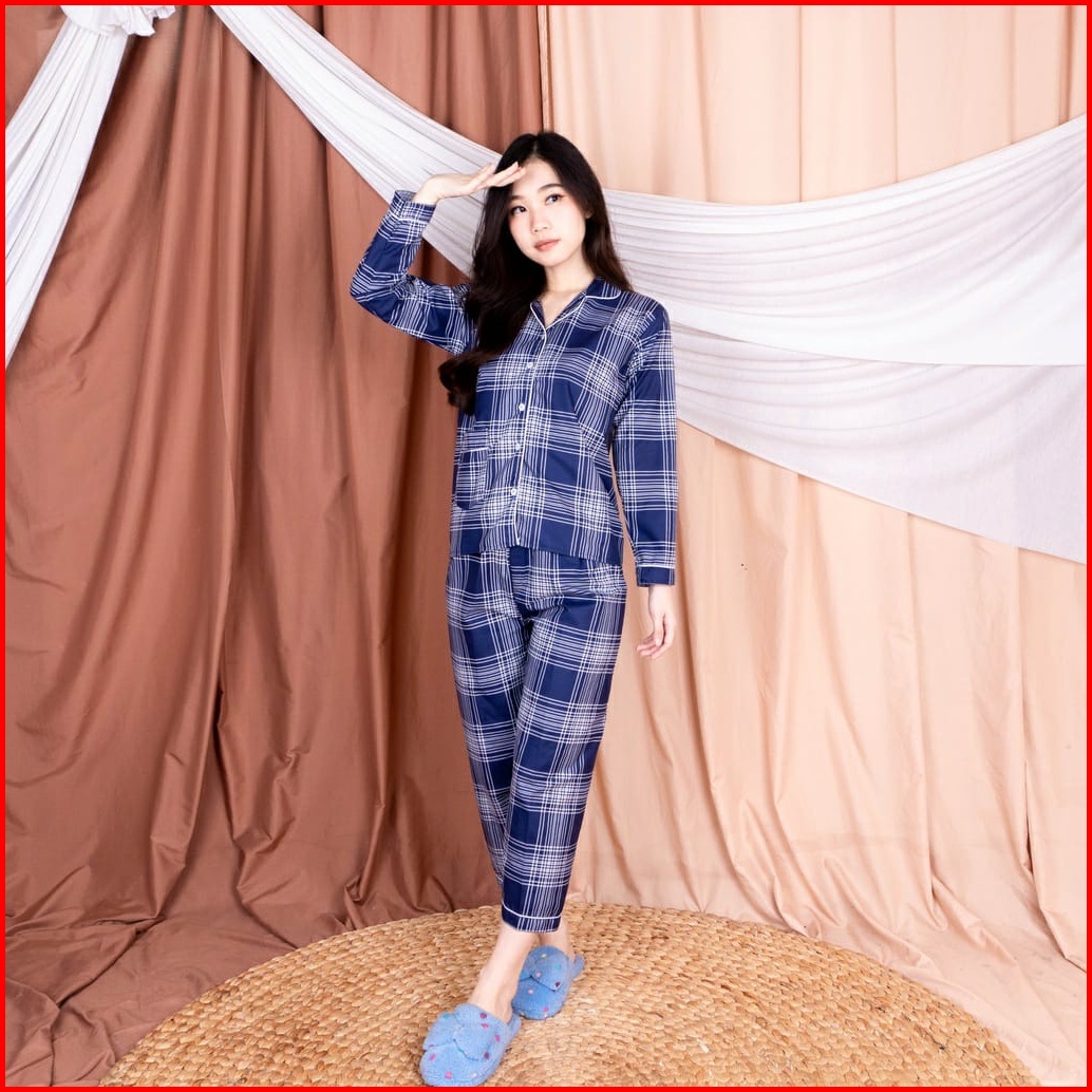 Bj - Piyama Pp Wanita Kotak Baju Tidur Lengan Panjang Katun Premium