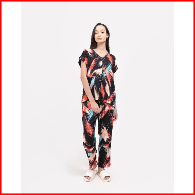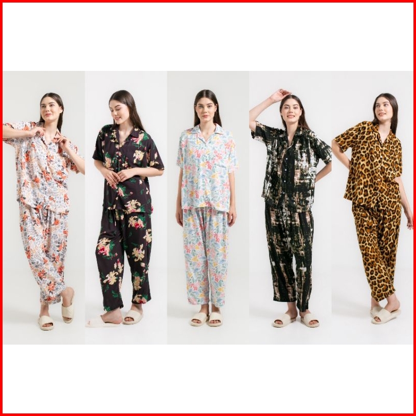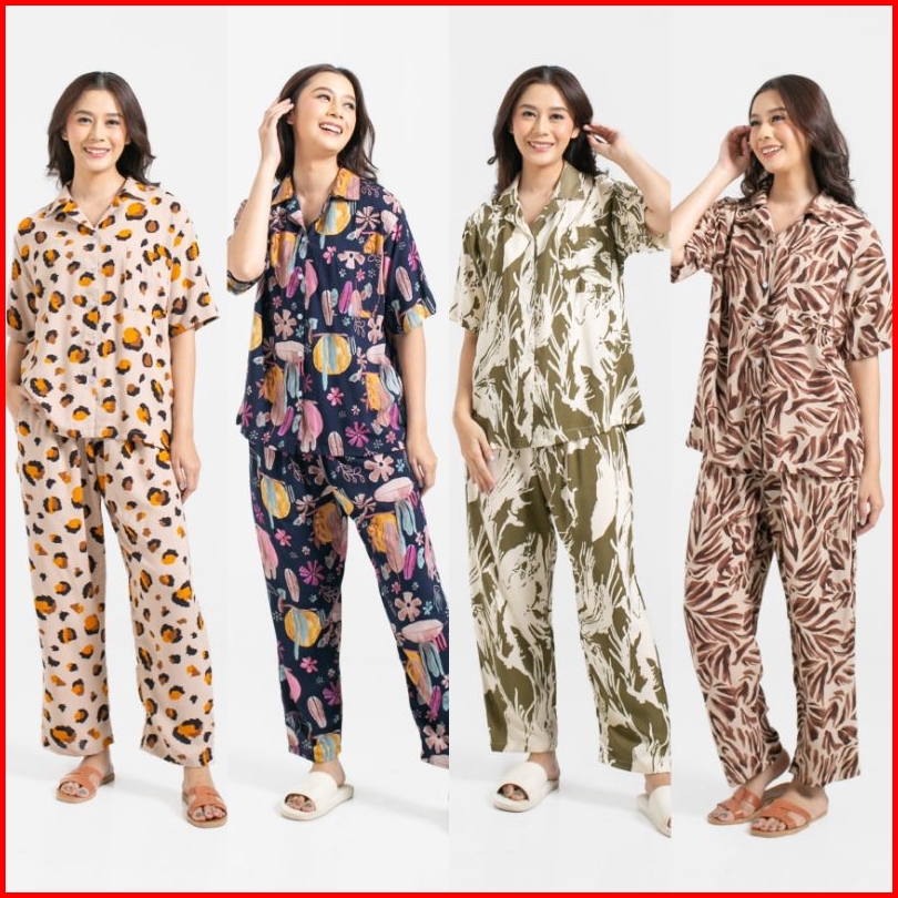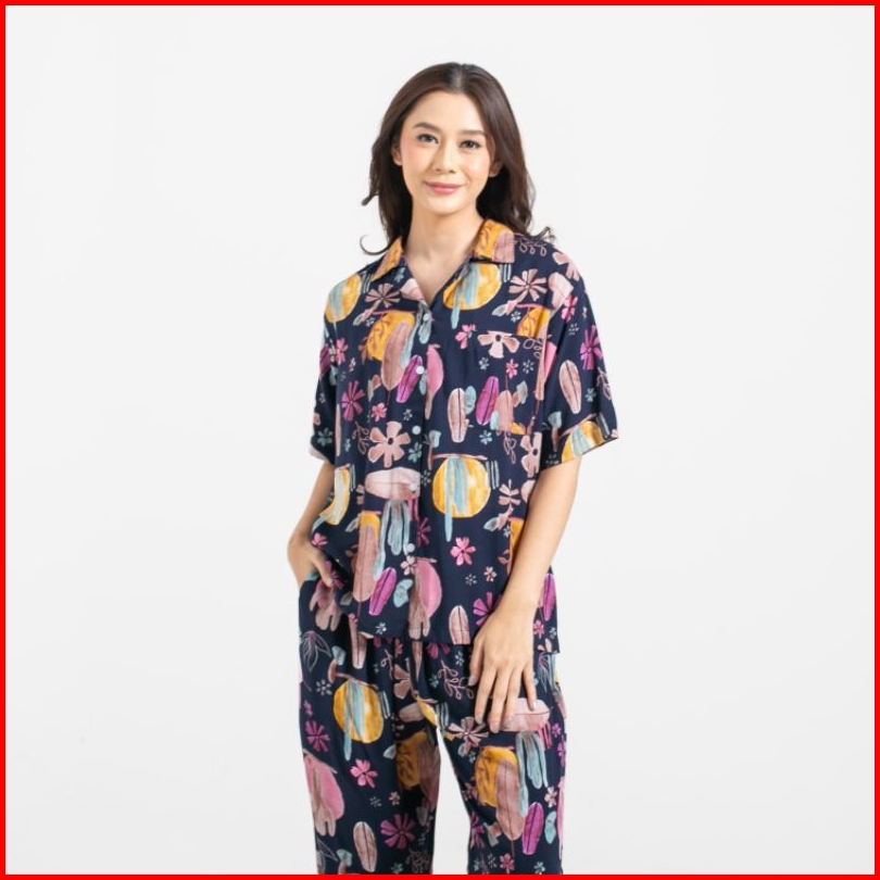 Maire Piyama Setelan One Set Rayon Pajamas Tie Dye Kancing Busui Motif