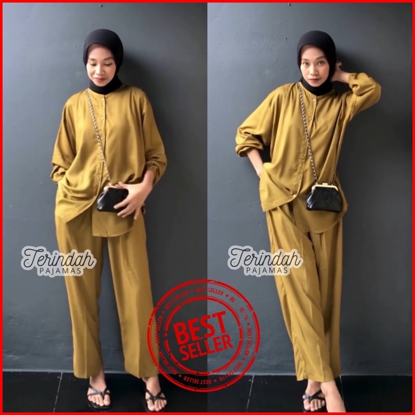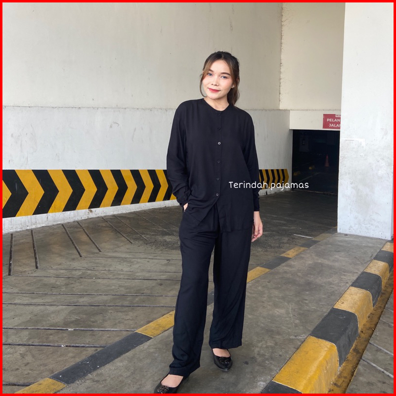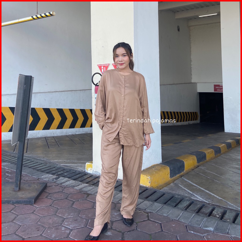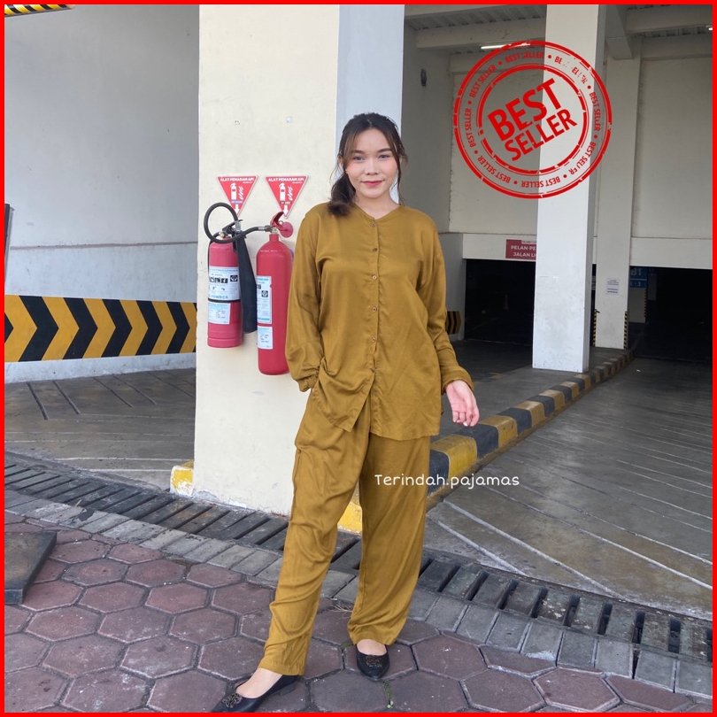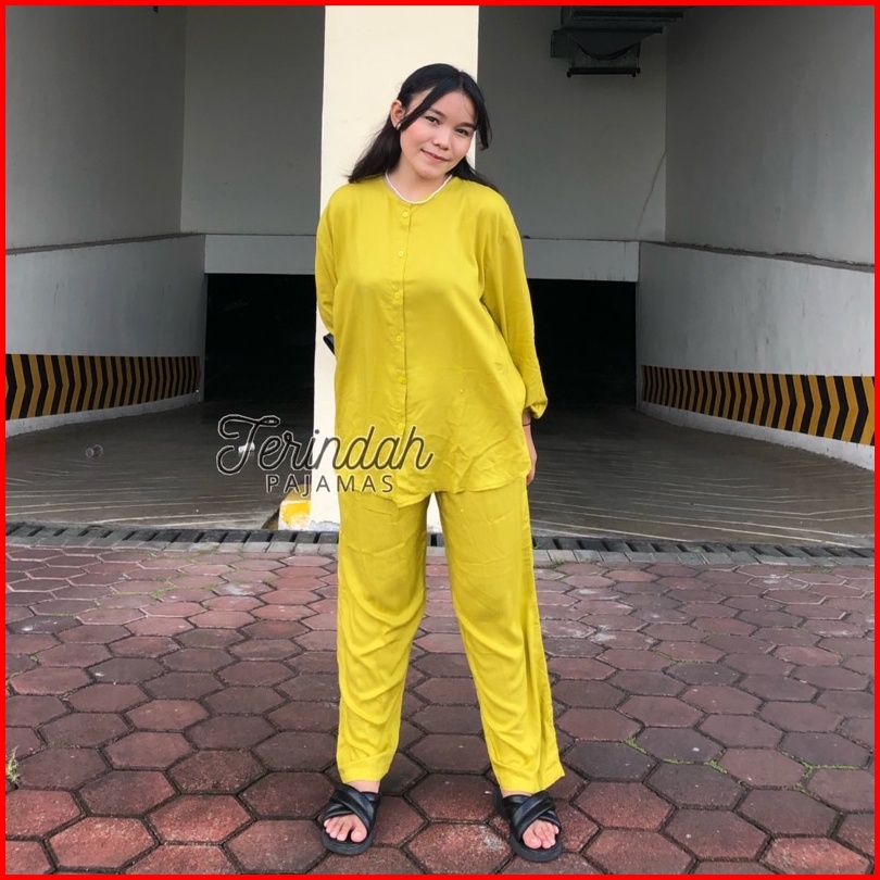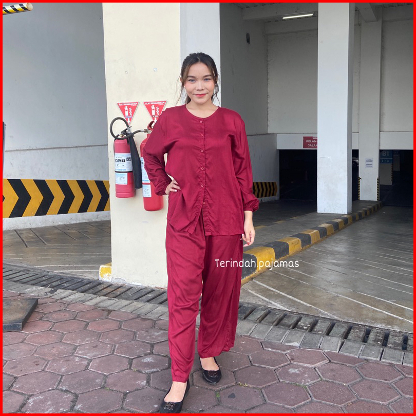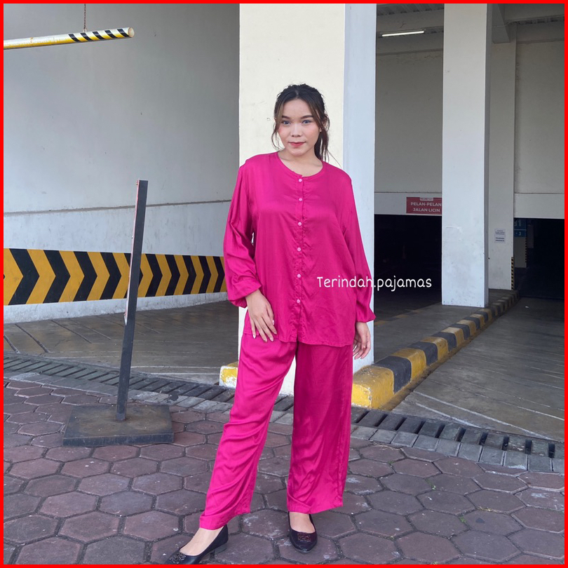 Pajamas Set Rayon Polos Pajamas Lengan Panjang Setelan Baju Tidur Wanita - Terindah.pajamas
