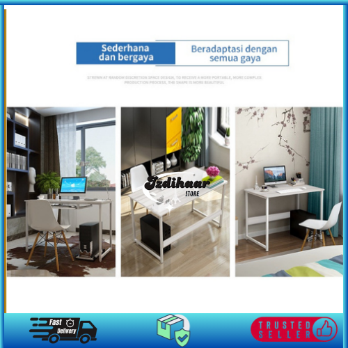 Meja Komputer Set Gaming Minimalis Persegi Panjang Besi Simple / Meja Belajar Anak Berkualitas Kayu Set Kursi Meja Rias