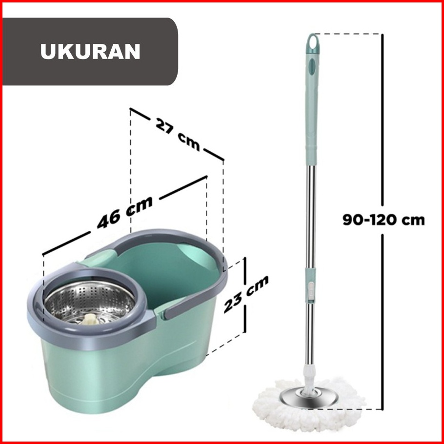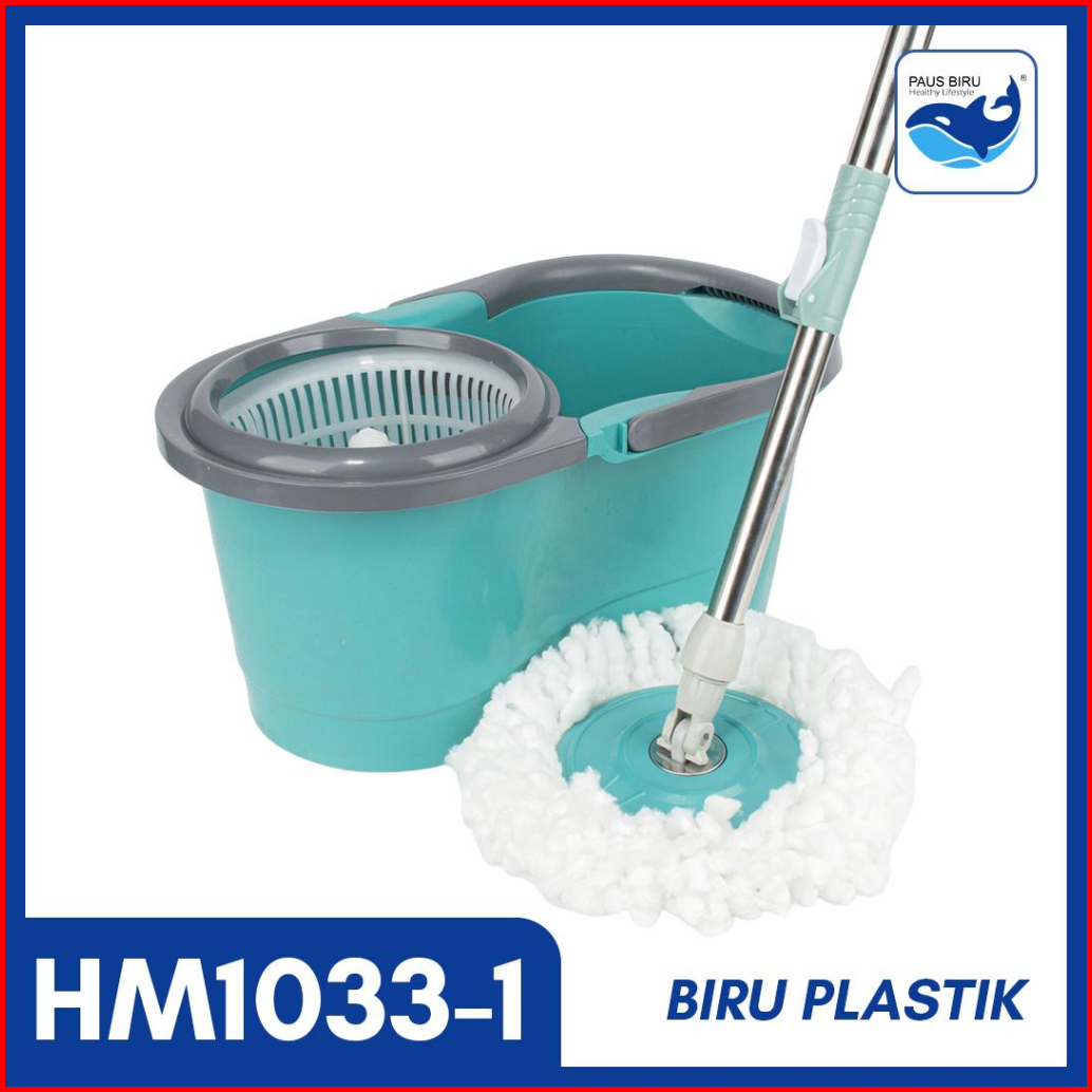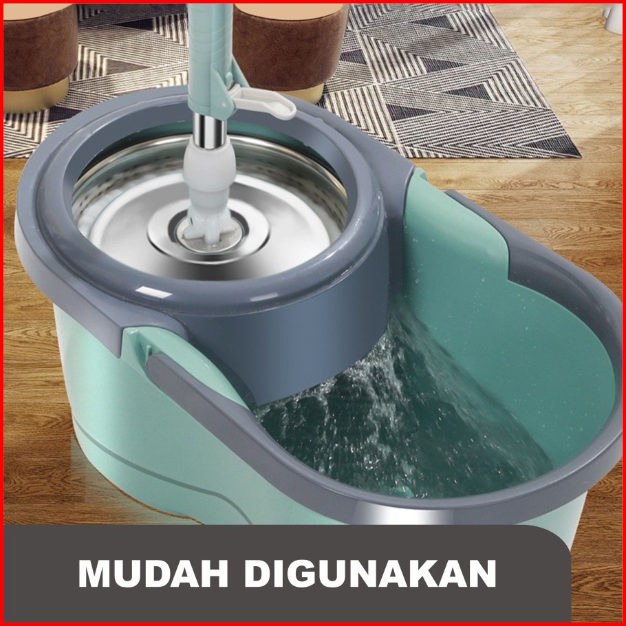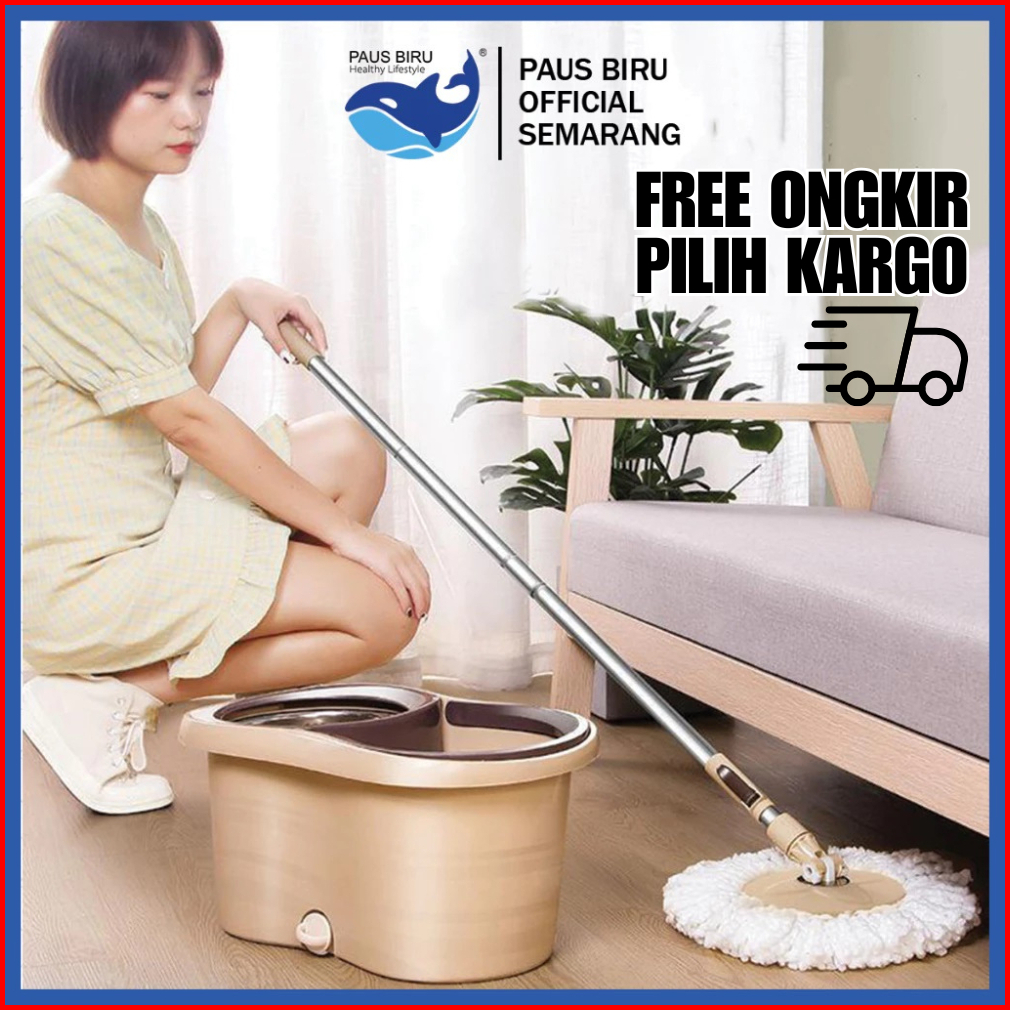 Paus Biru - Set Alat Pel Lantai Stainless Super Mop Dengan Ember Pencuci Putar