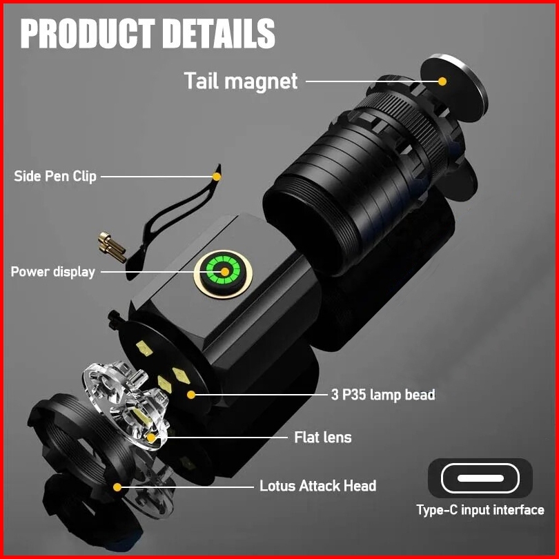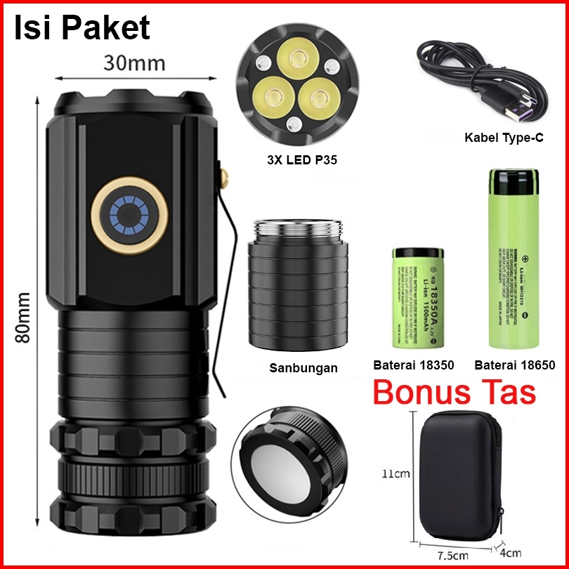 Senter Led Super Terang Mini 3xled P35 Bl-350 Magnet Hiking Camping