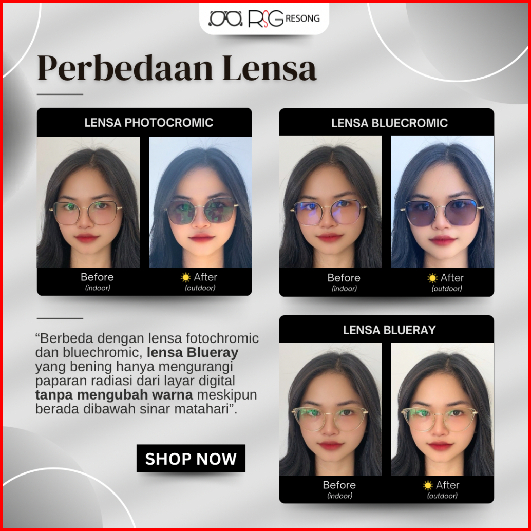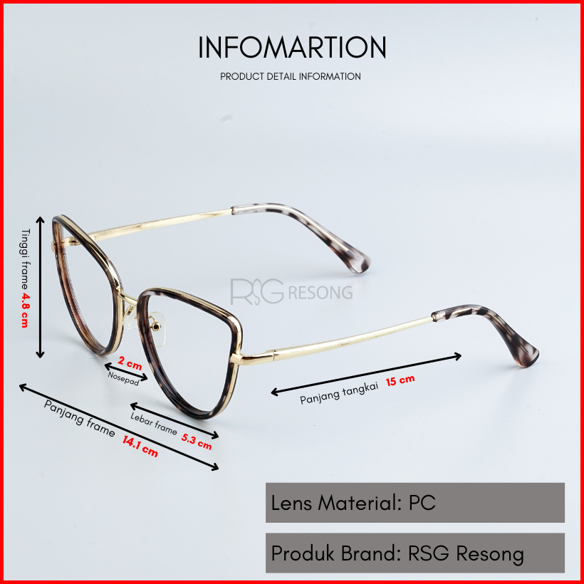 Resong Kacamata Cat Eye Wanita Normal Minus Cylinder Baca Lensa Blueray Photocromic Bluecromic
