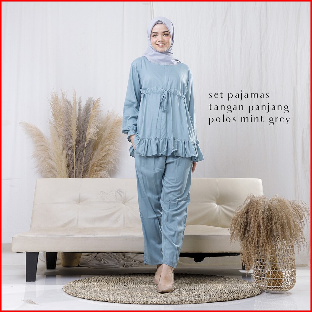 Leesy.id - Set Pajamas Polos Busui Lengan Panjang