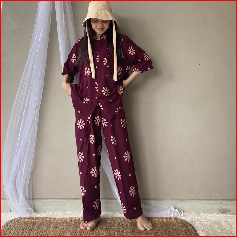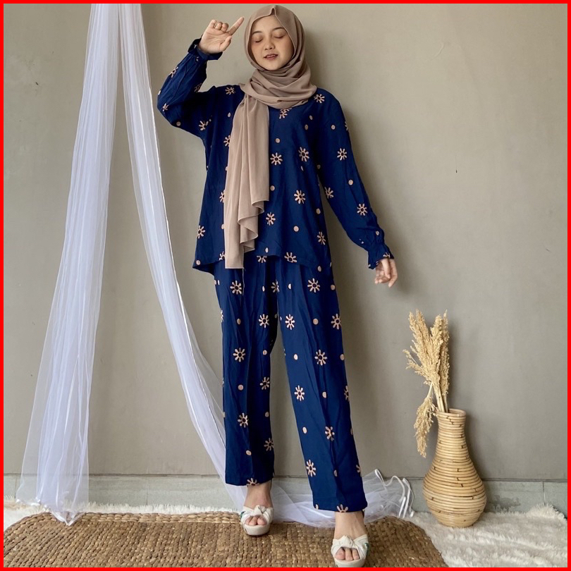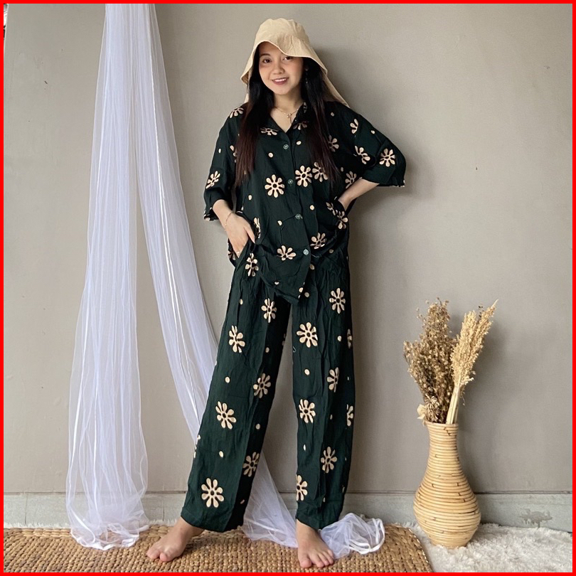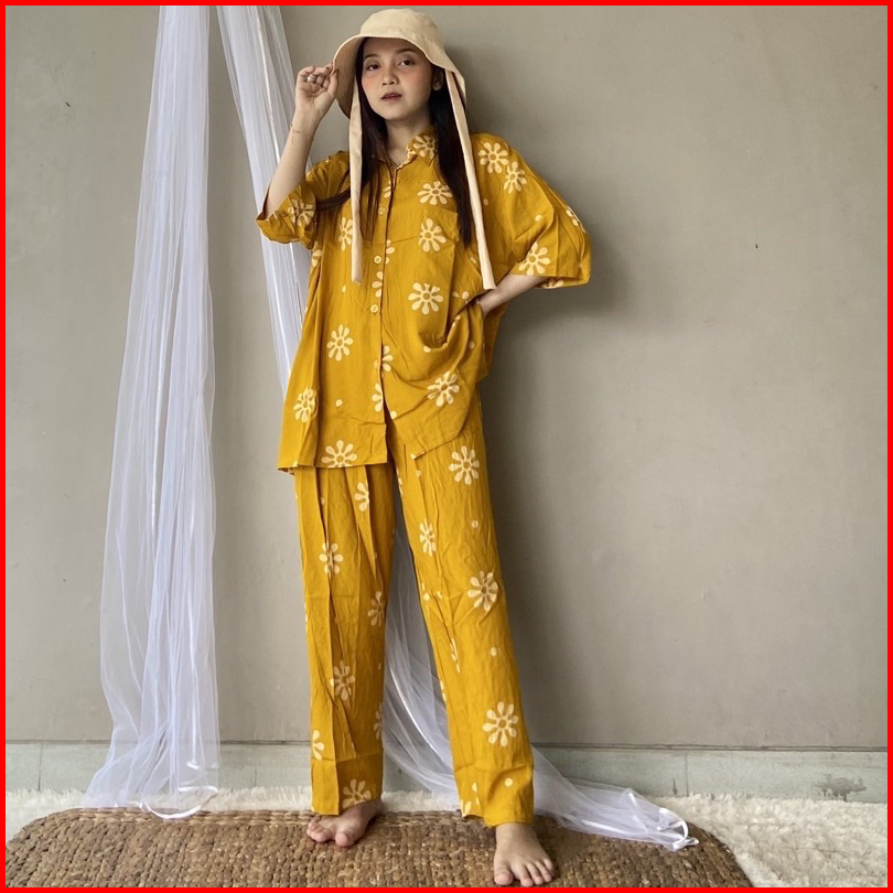 Daisy One Set Rayon Lengan Panjang Bunga Daisy Pajamas Rayon Piyama Rayon Baju Tidur Rayon