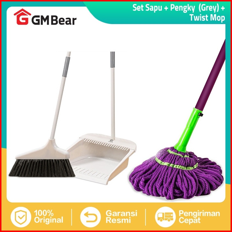 Gm Bear Bundle Hemat Alat Pel Lantai Putar Praktis Otomatis 1109 Sapu Lantai Pengki Set 1776