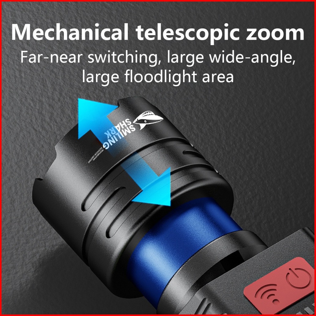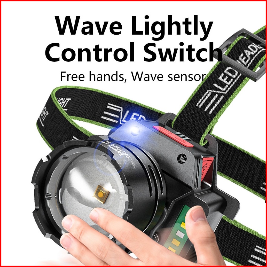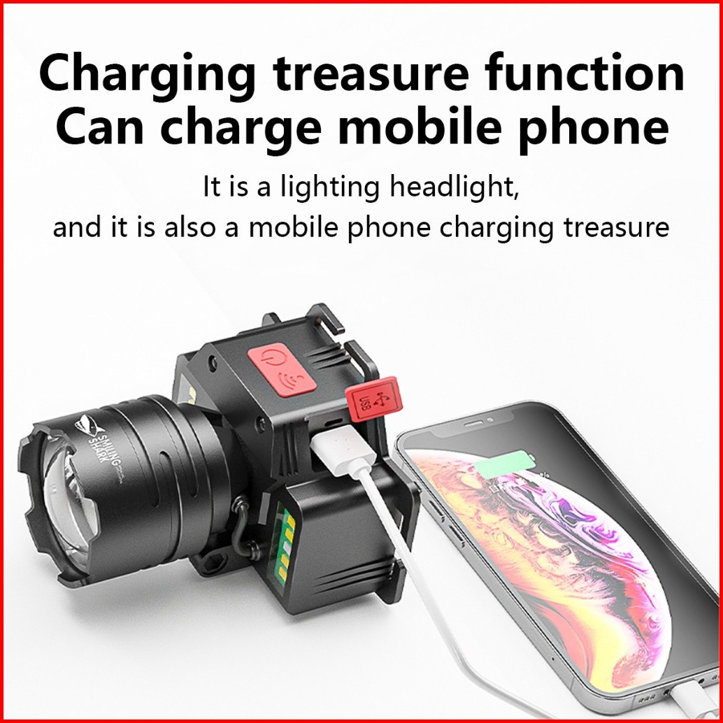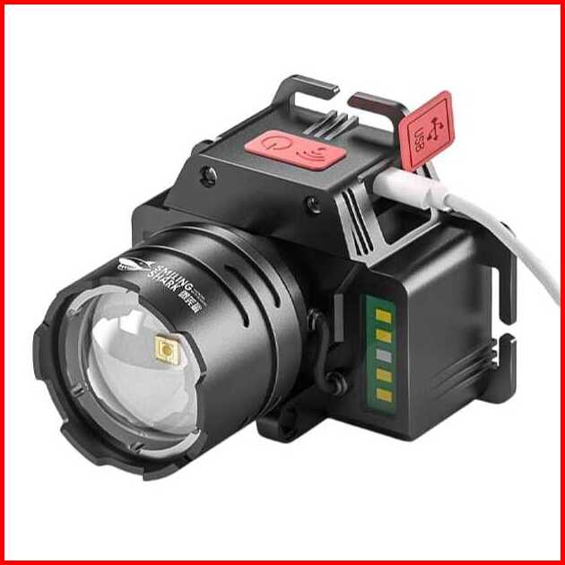 Senter Kepala Led Smiling Shark Td-8028 M60 - Zoom Sensor Dan Powerbank - 6 Mode Cahaya - Type C